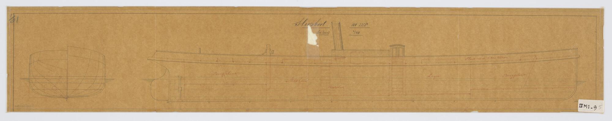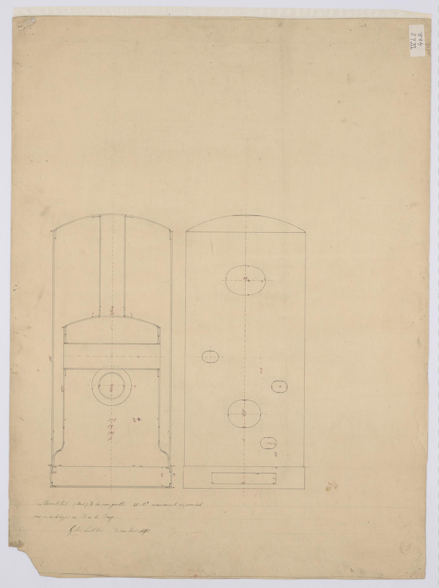 Verticale langsdoorsnede, met schots ketel, dwarsdoo...