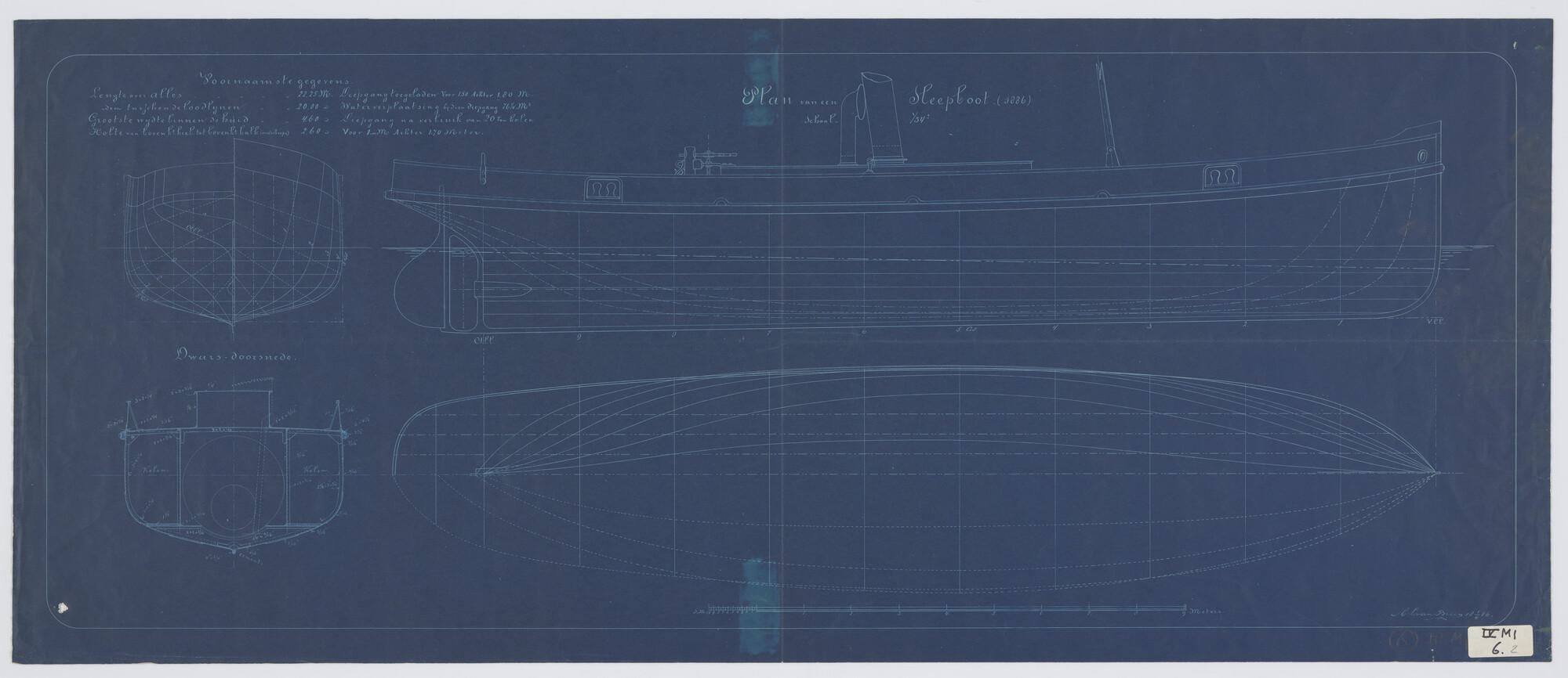Zijaanzicht van een sleepboot 1886, afm.: 20 x 4.60 ...