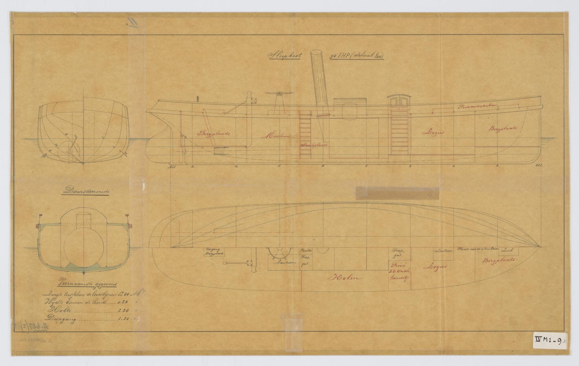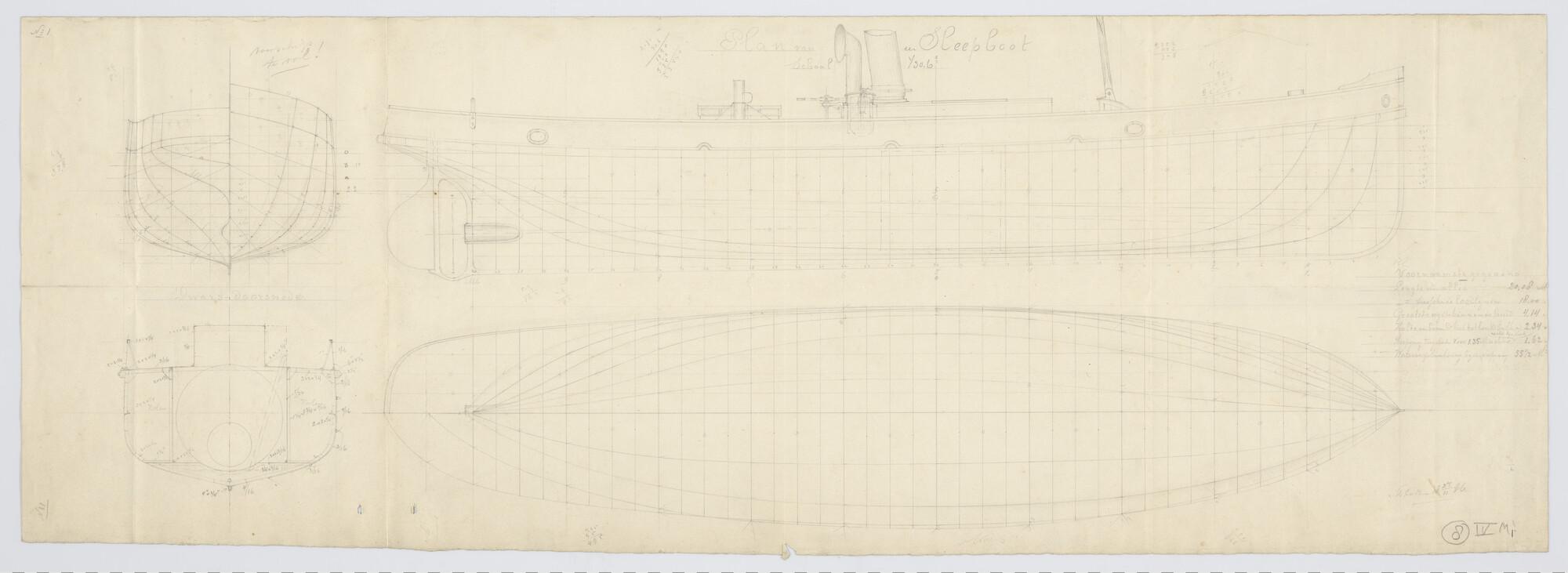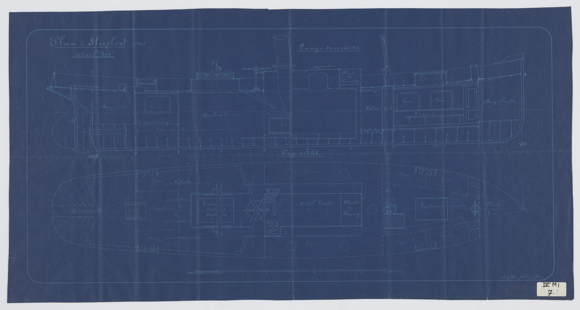 Zijaanzicht en bovenaanzicht van de Sleepboot 'Anna'...