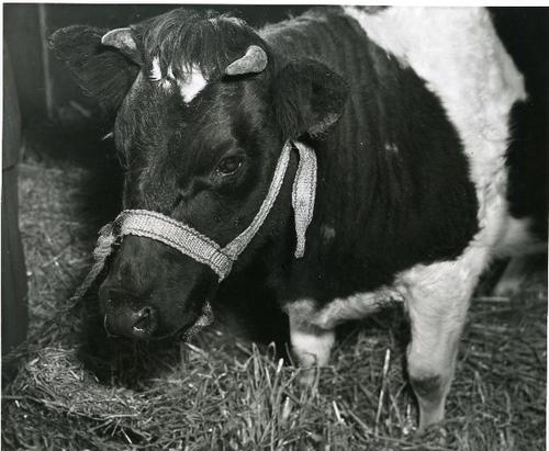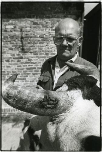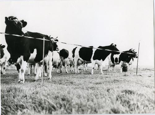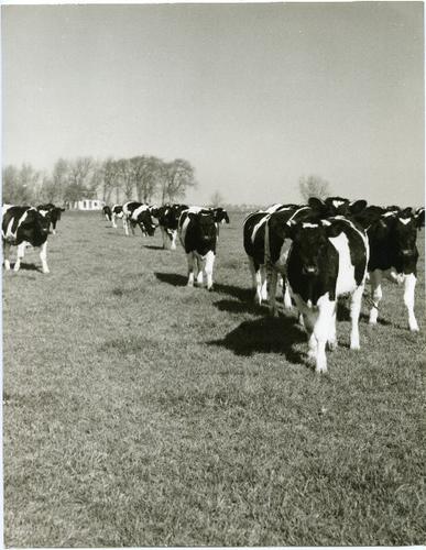 Foto in zwart-wit van kalveren door J.D. de Jong , 1978