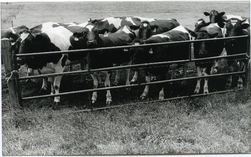 Foto in zwart-wit van koeien achter een hek door Joh...