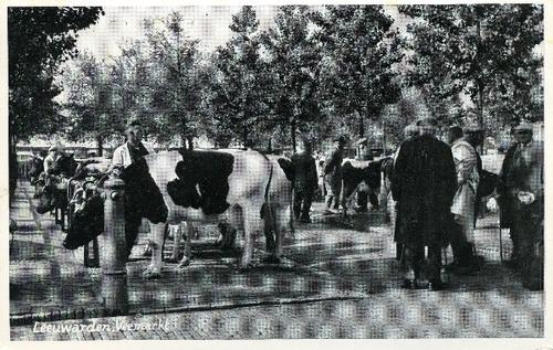 Prentbriefkaart in zwart-wit van de oude veemarkt te...