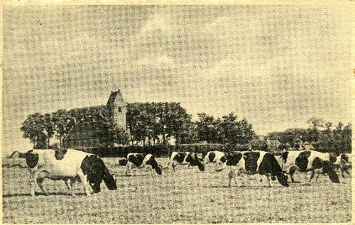 Prentbriefkaart in zwart-wit van grazende koeien in ...