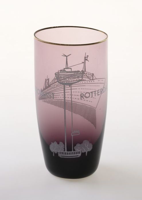 Paars glas met afbeelding van de Euromast en de MS R...