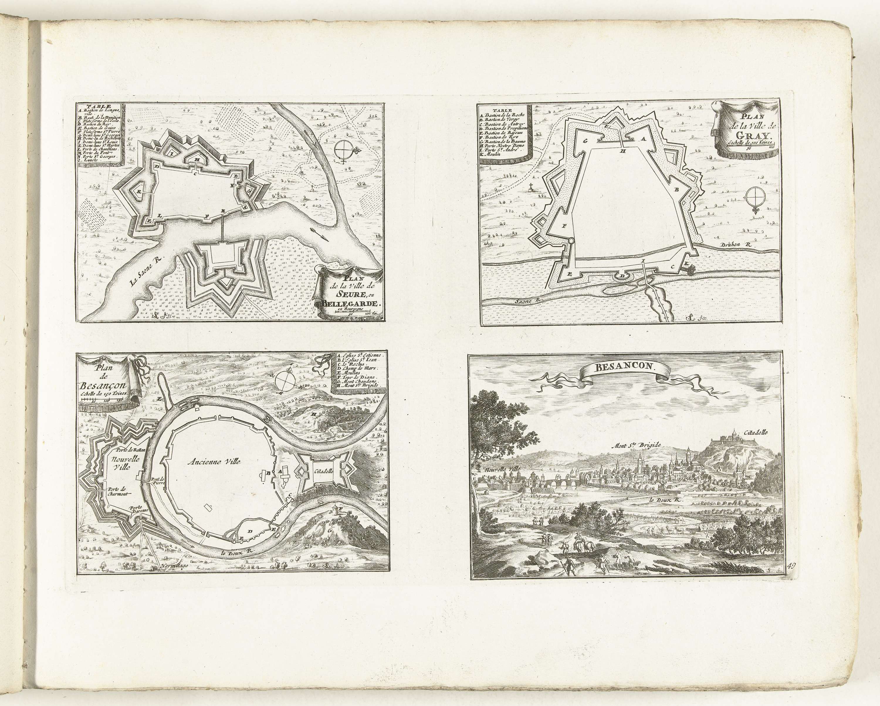 Plattegrond van Besançon, ca. 1702