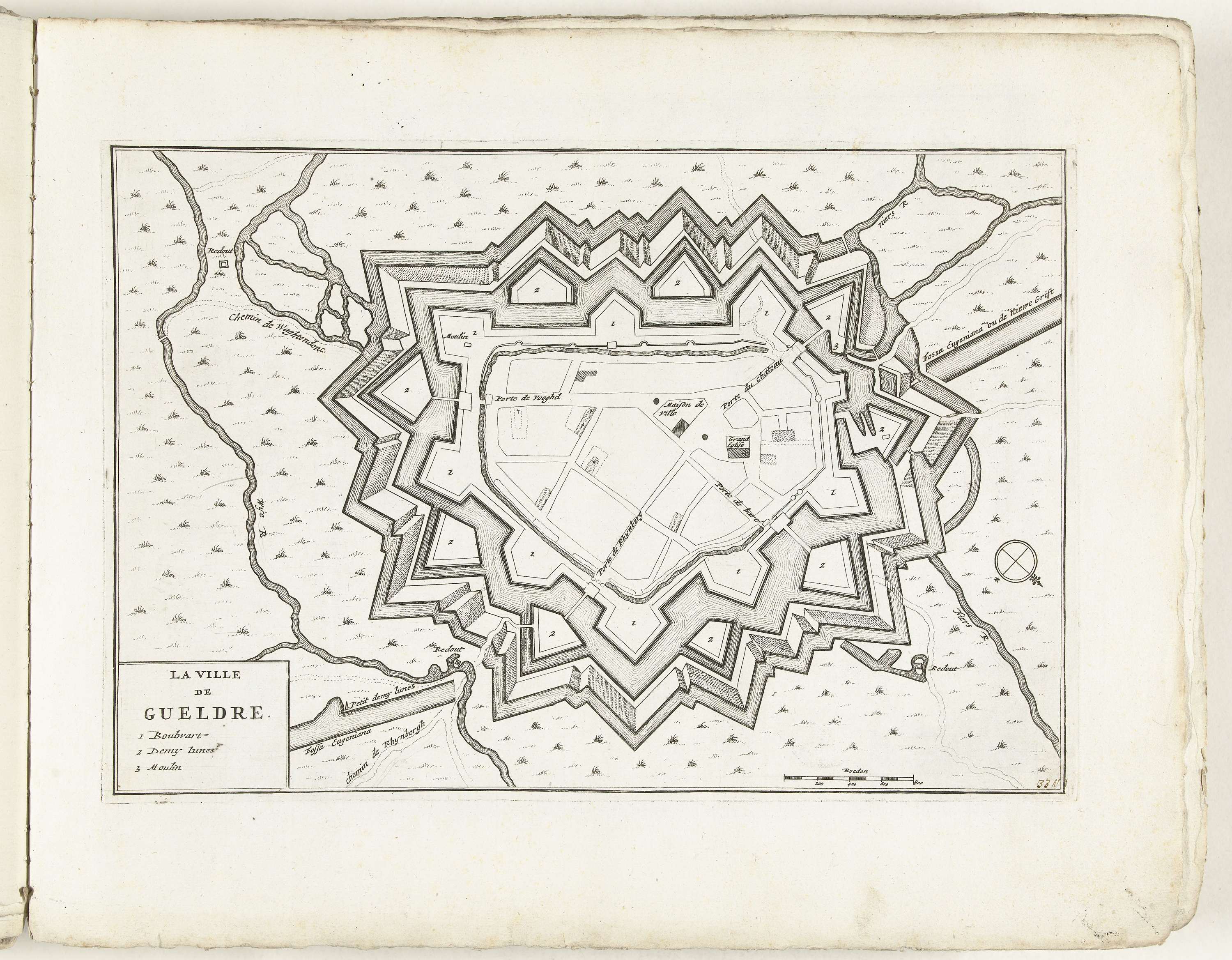 Plattegrond van Geldern, ca. 1702