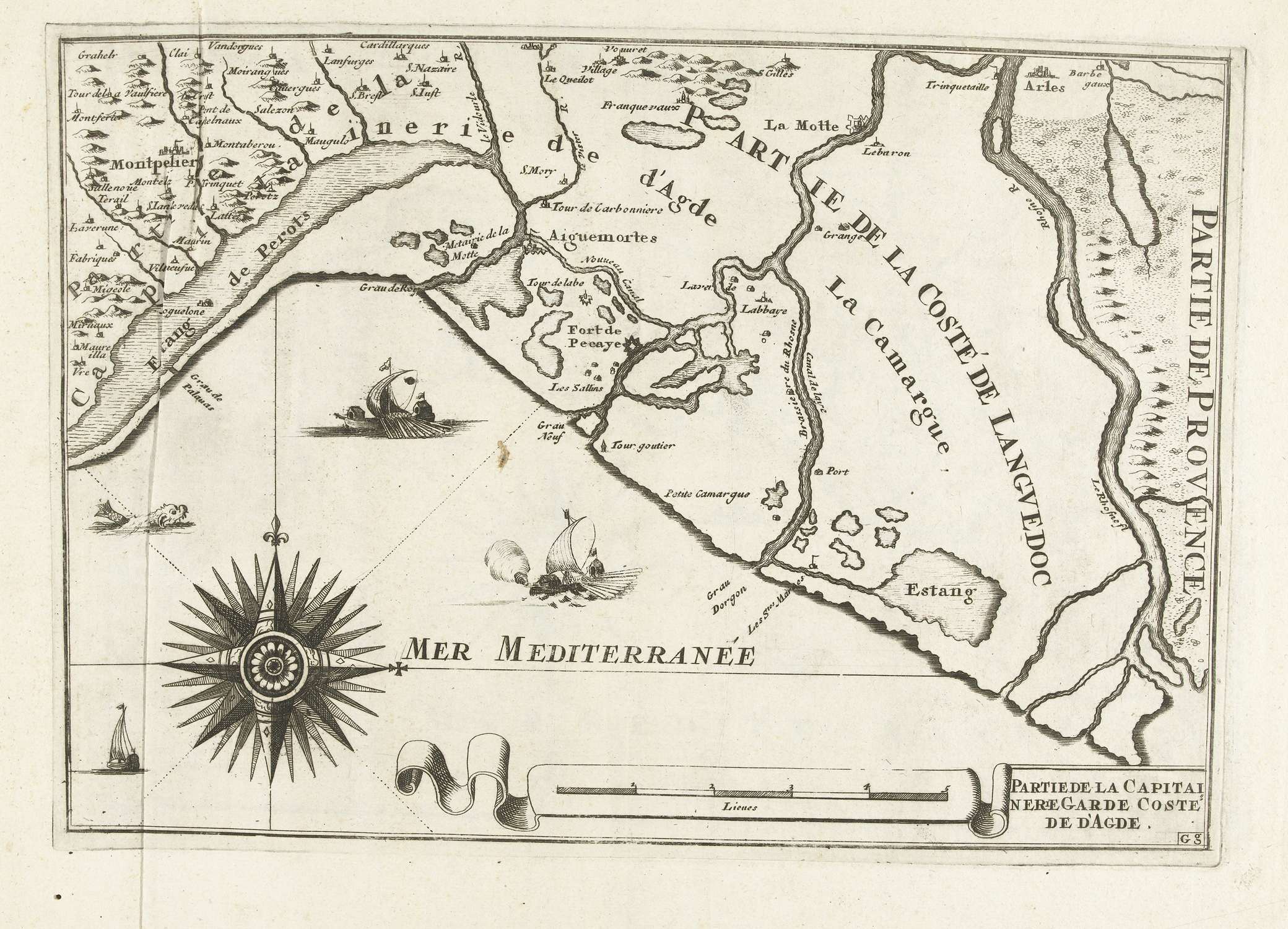 Kaart van de Franse zuidkust bij Montpellier, ca. 1702