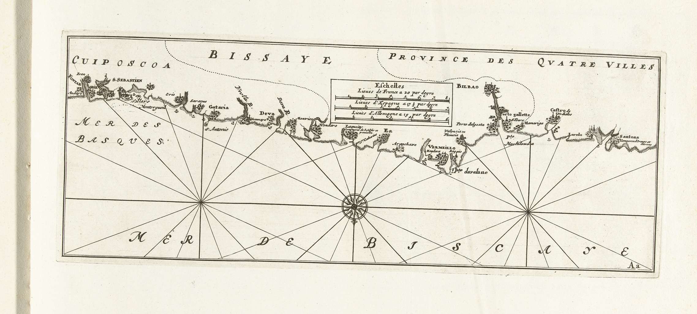 Kaart van de zuidkust van Bretagne, ca. 1702