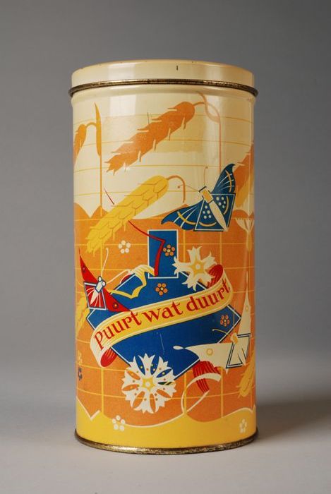 Cilindrisch "Hooijmeijer" beschuitblik, met aren, bl...
