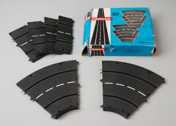 Klein doosje met delen van racebaan "Carrera" van zw...
