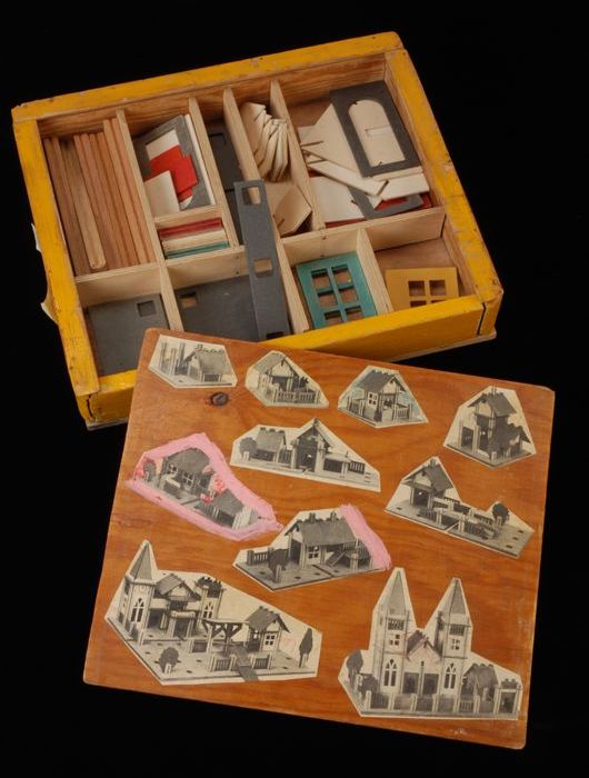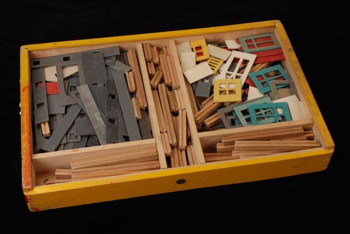 Mobaco bouwdoos, kleine houten kist, met zes losse o...