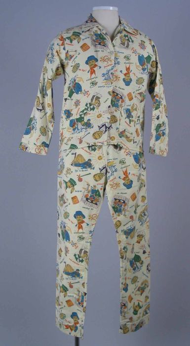 Jongenspyjama, tweedelig van crèmekleurig flanel bed...