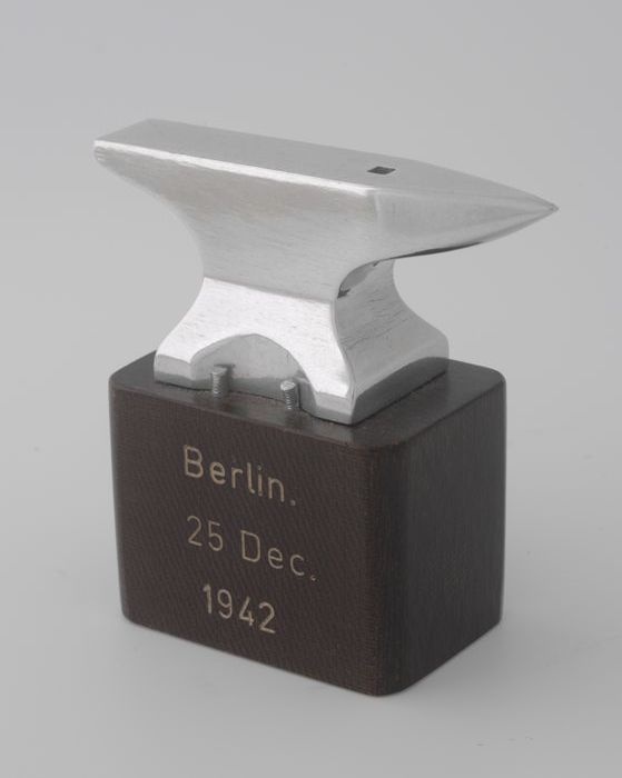 Miniatuur aambeeld van aluminium op bakelieten sokke...