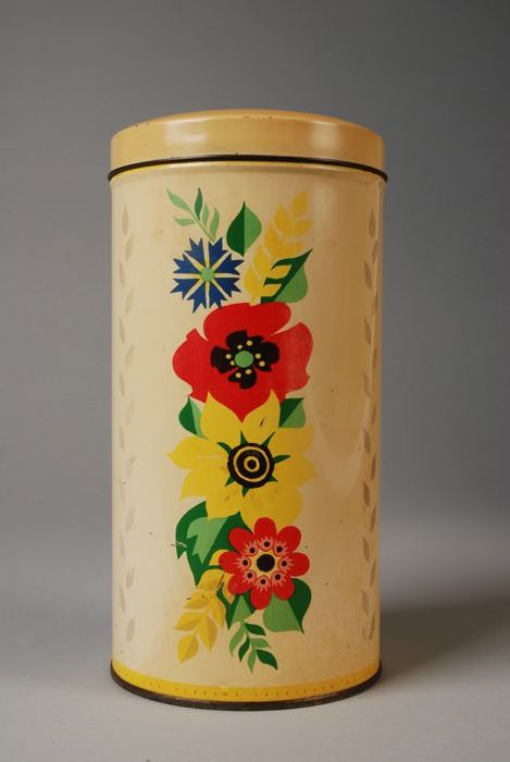 Cilindrisch geel beschuitblik Verkade, met gekleurde...