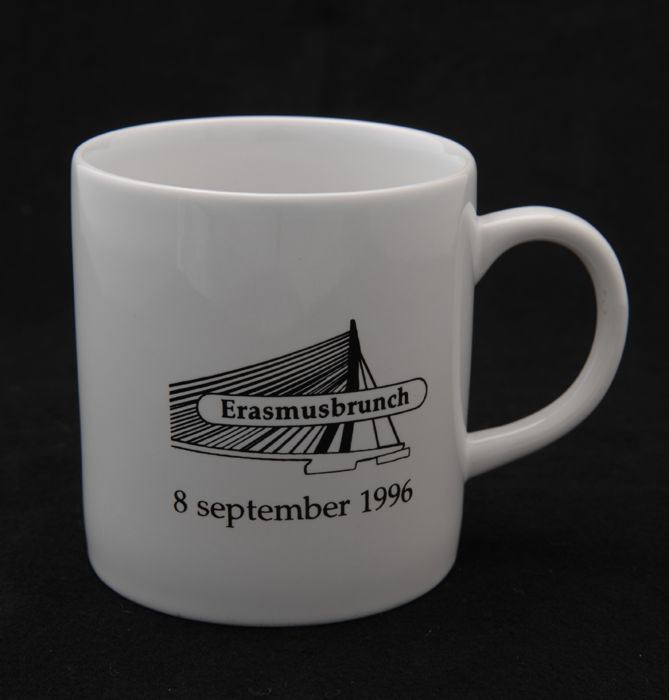 Porseleinen beker met opschrift "Erasmusbrunch / 8 s...