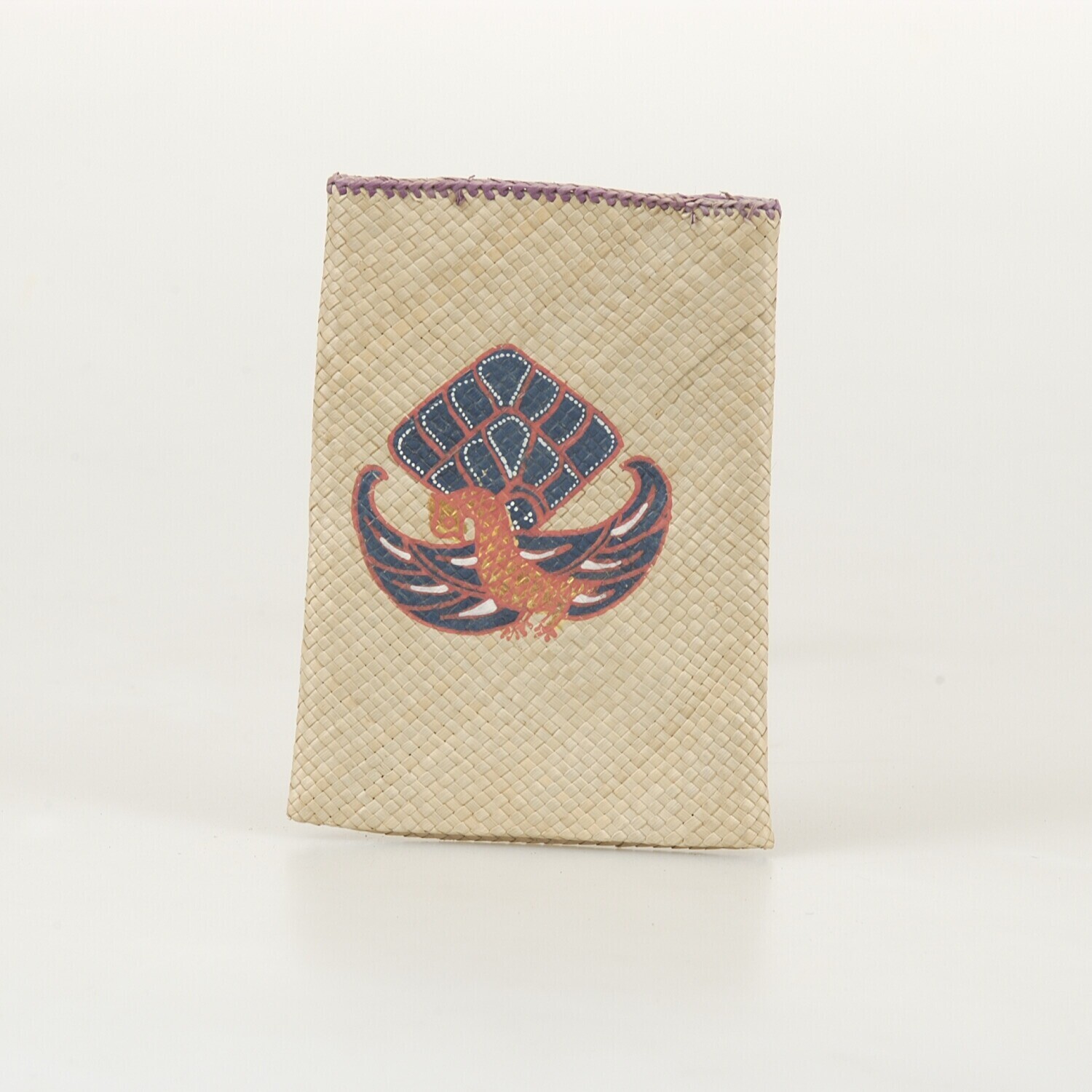 Gevlochten zak van plantaardige vezel met daarop bes...
