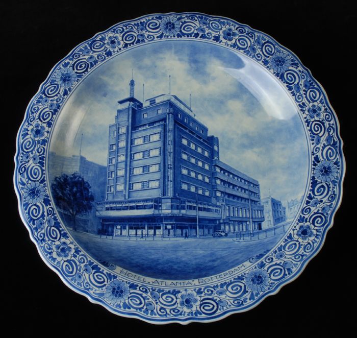 Delfts blauw wandbord met afbeelding van Hotel Atlan...