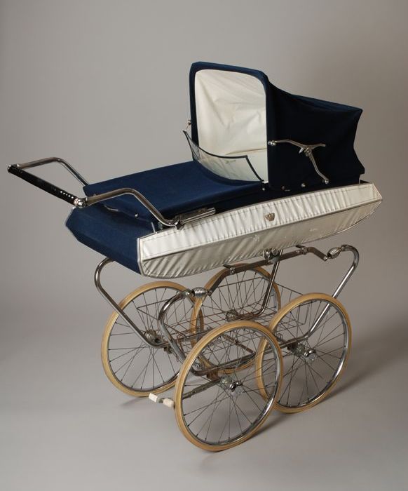 Kinderwagen, merk "Van Delft", donkerblauwe kap, wit...