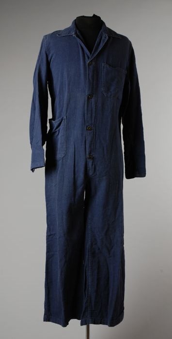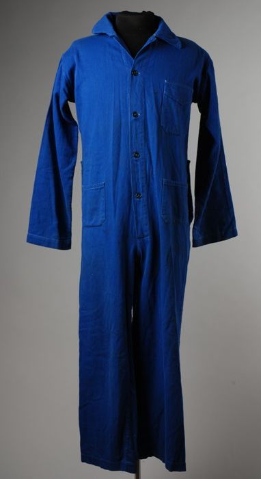 Kobaltblauwe overall met lange mouwen met knoopsluit...