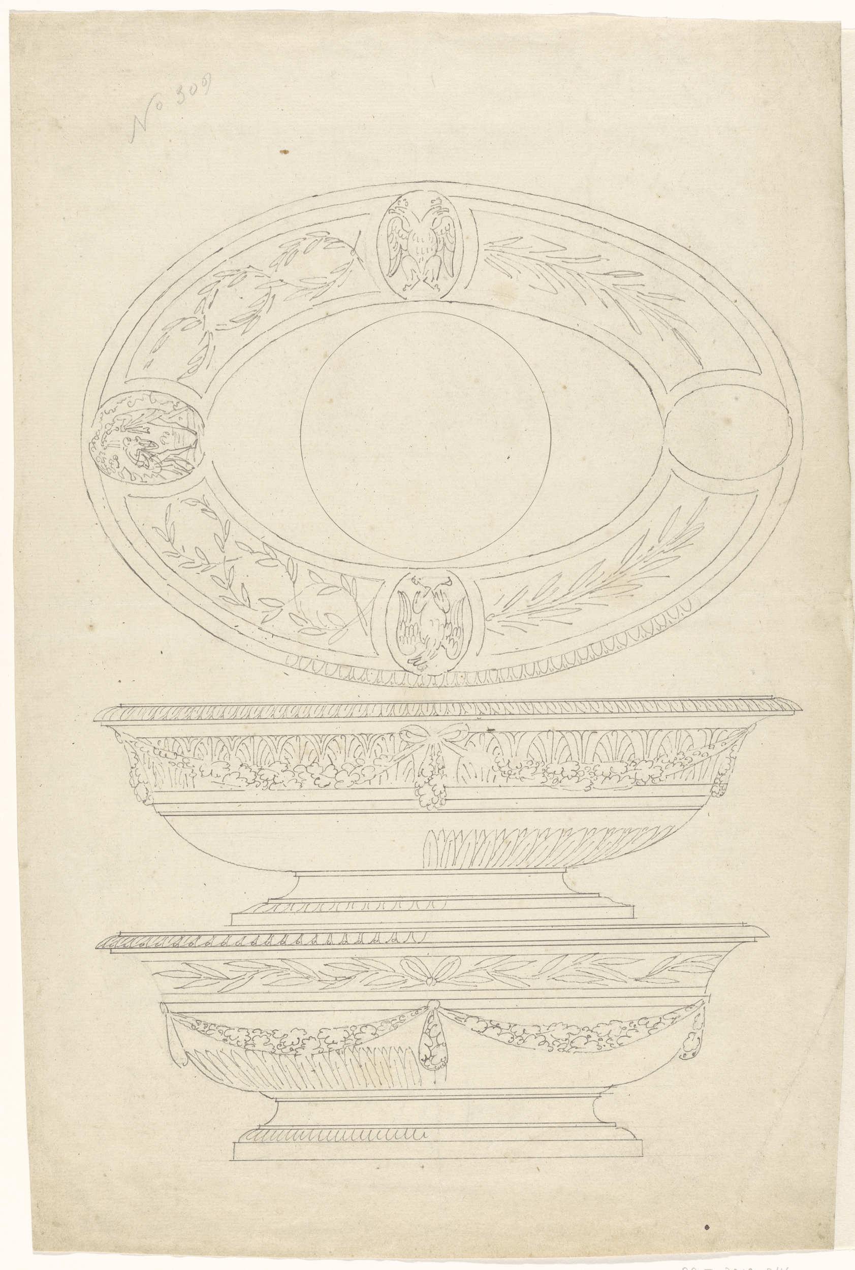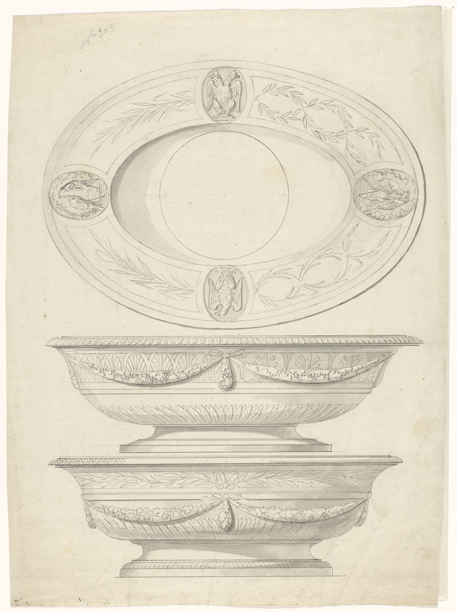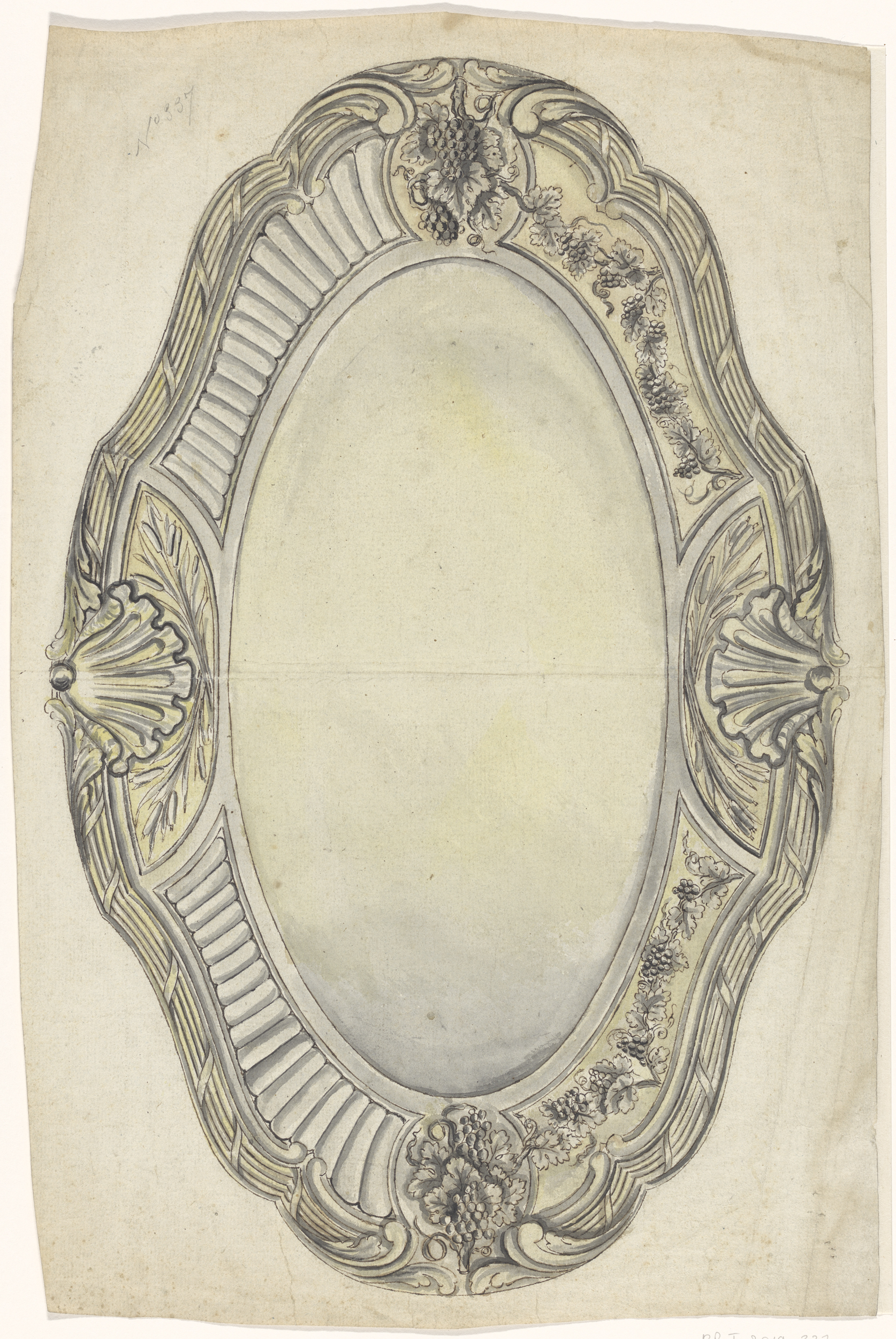 Ontwerp voor een met druiven versierde schaal (voora...