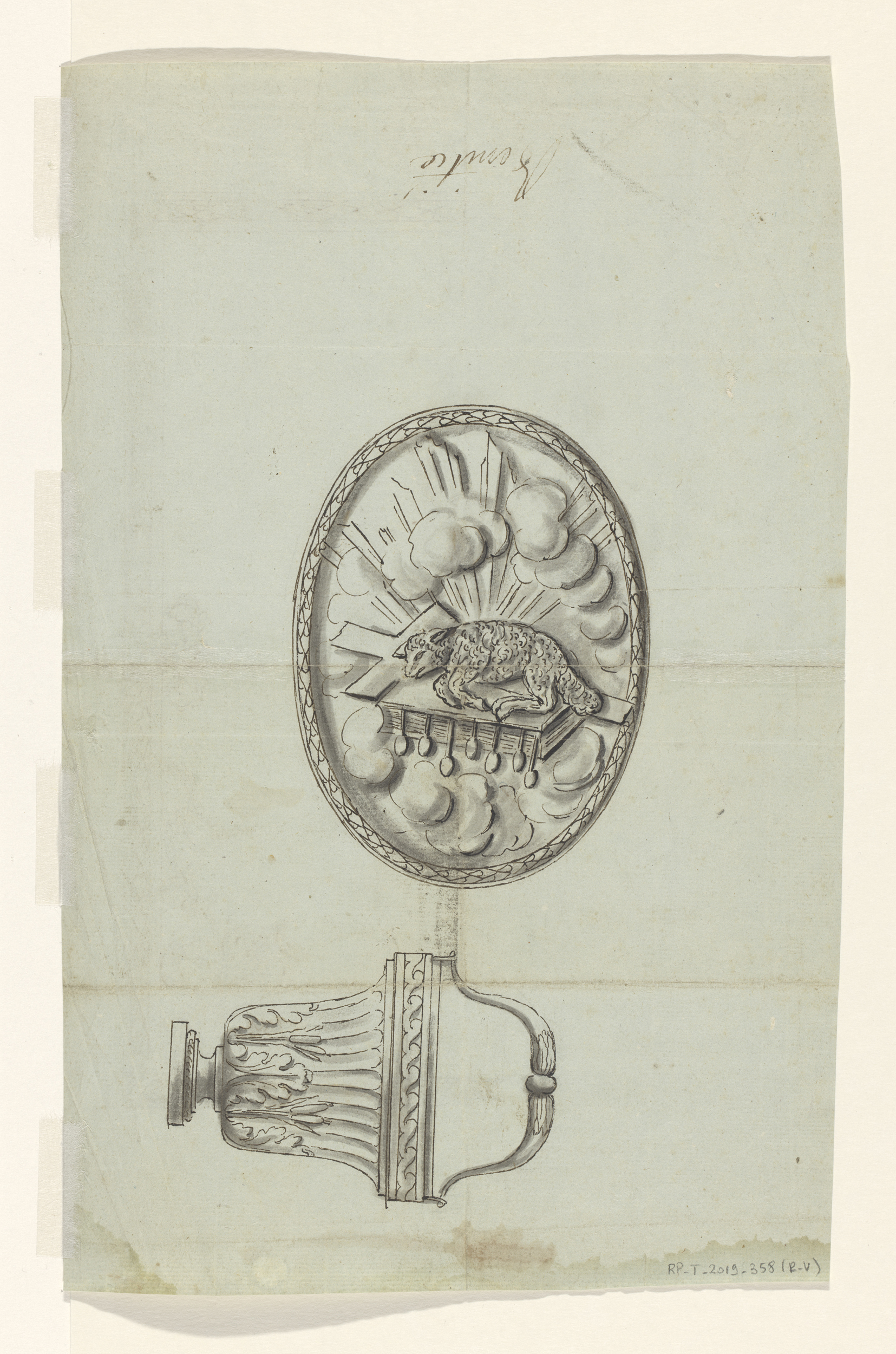 Ontwerp voor het beslag van een boekband met het lam...