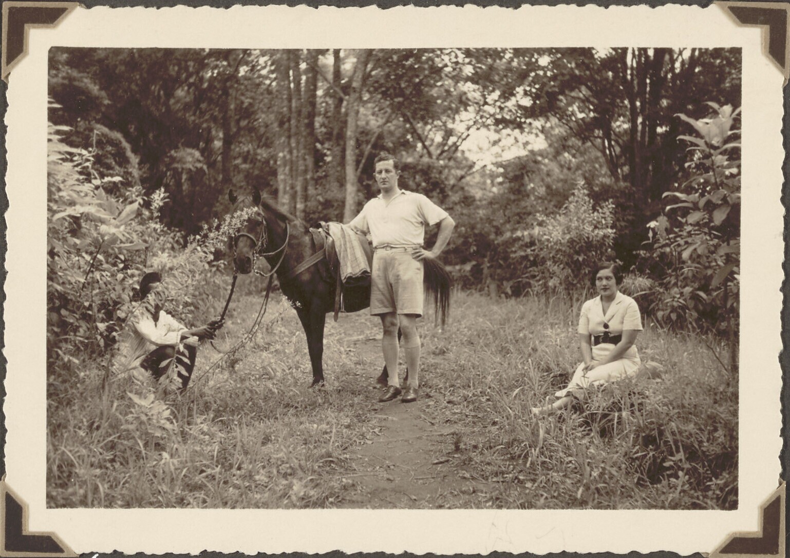 Twee mannen en een vrouw met een paard op pad op Java