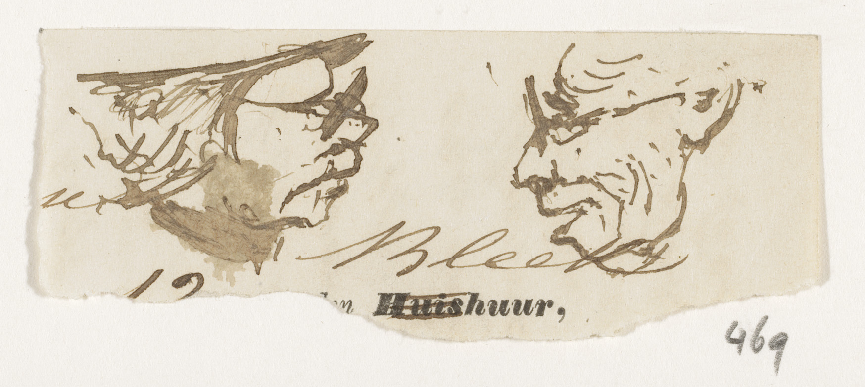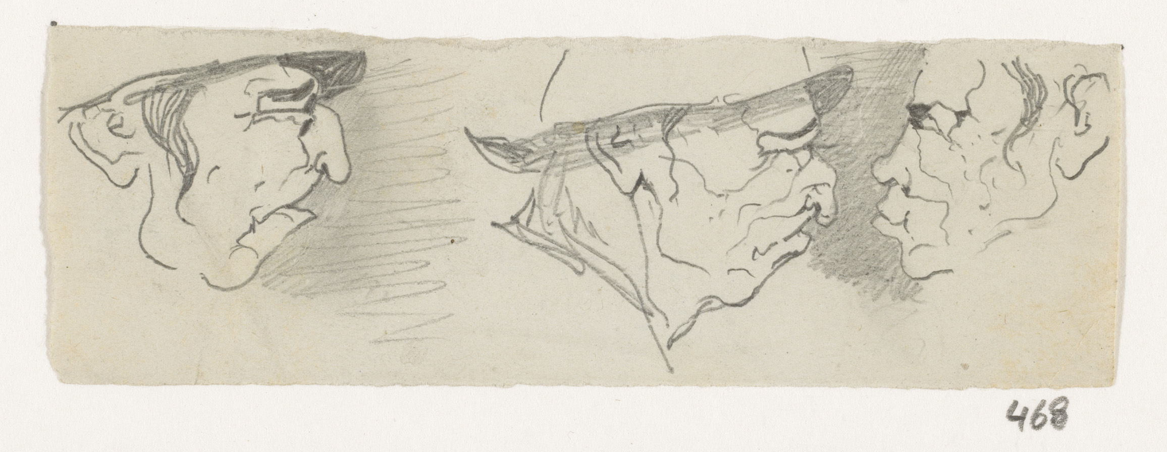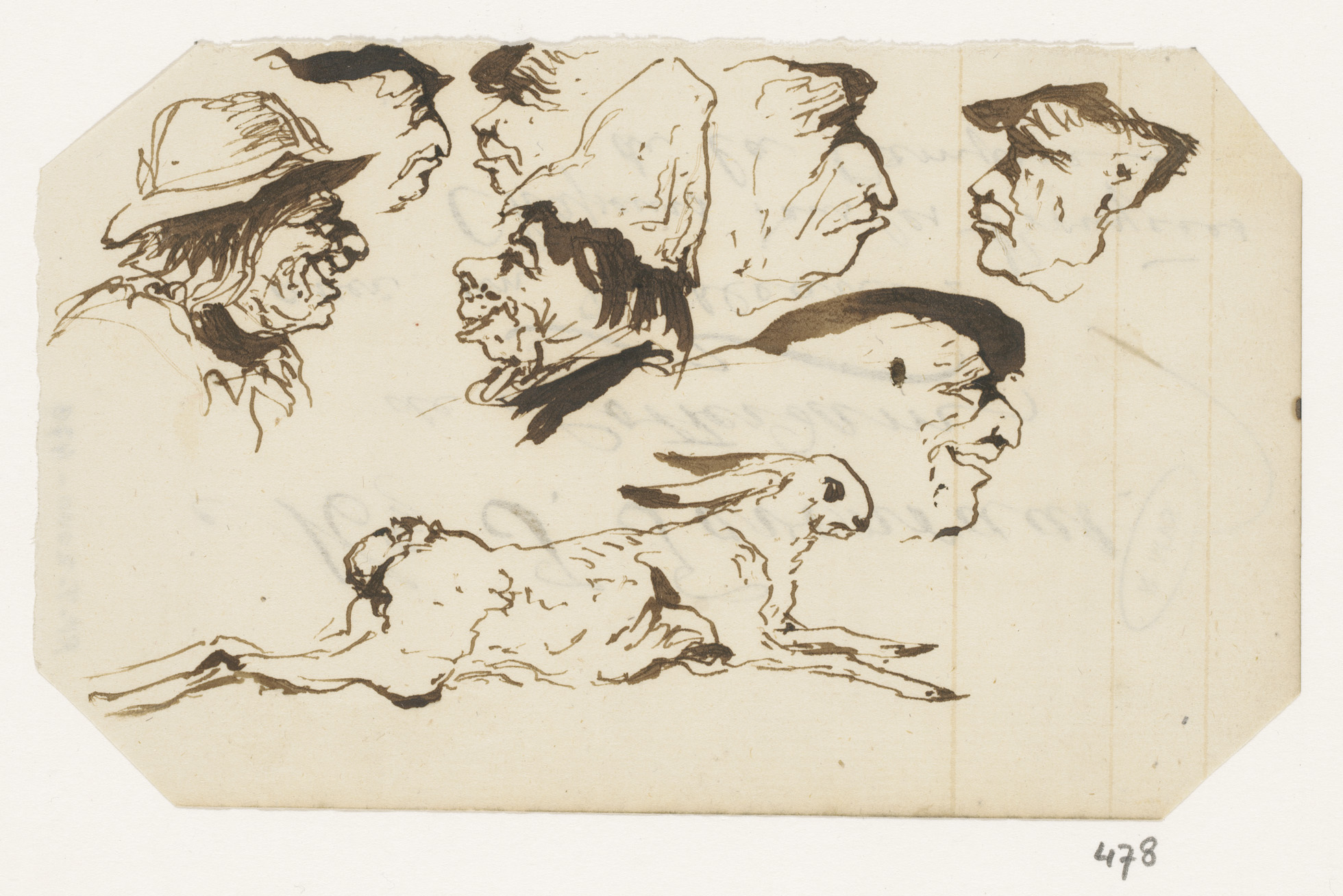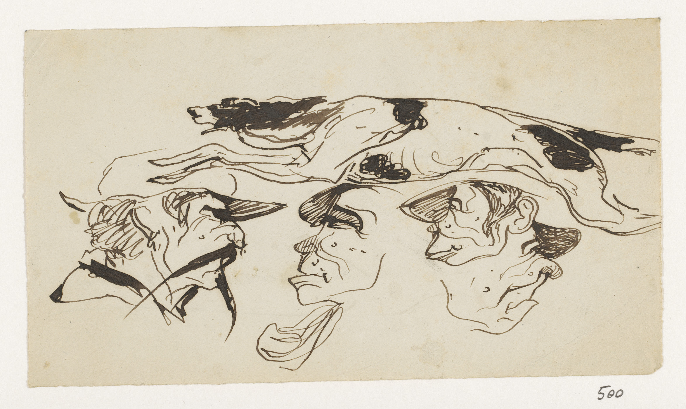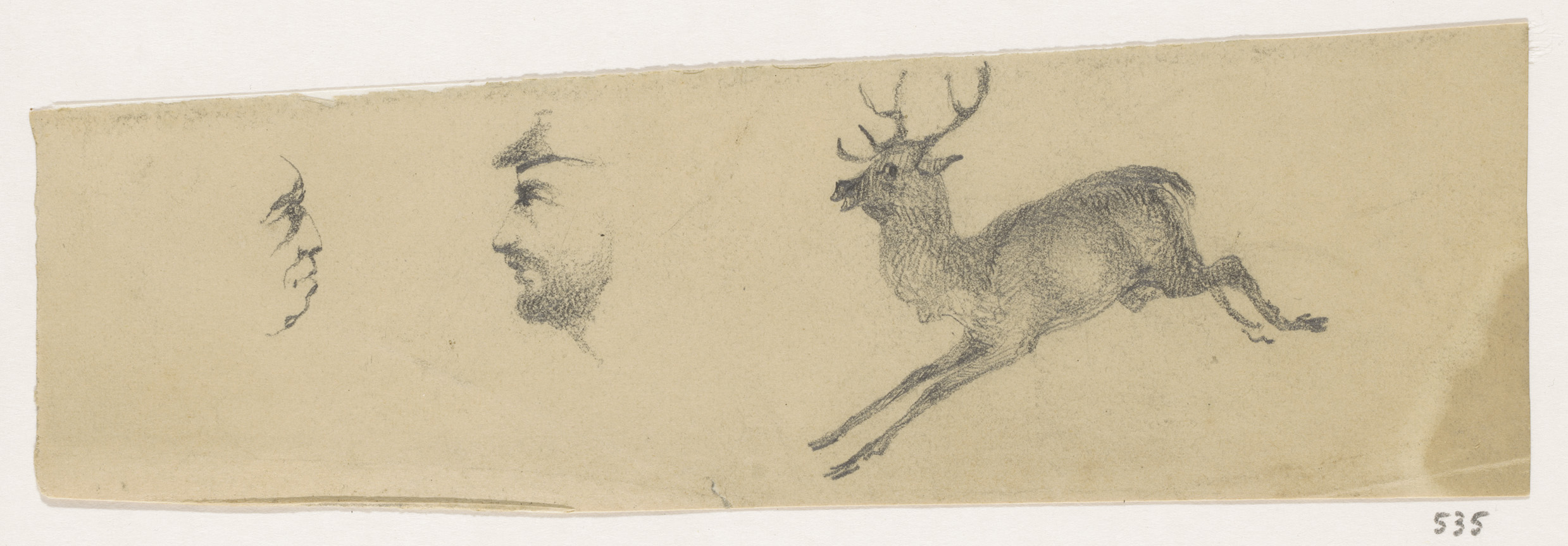 Schetsblad met koppen en herten