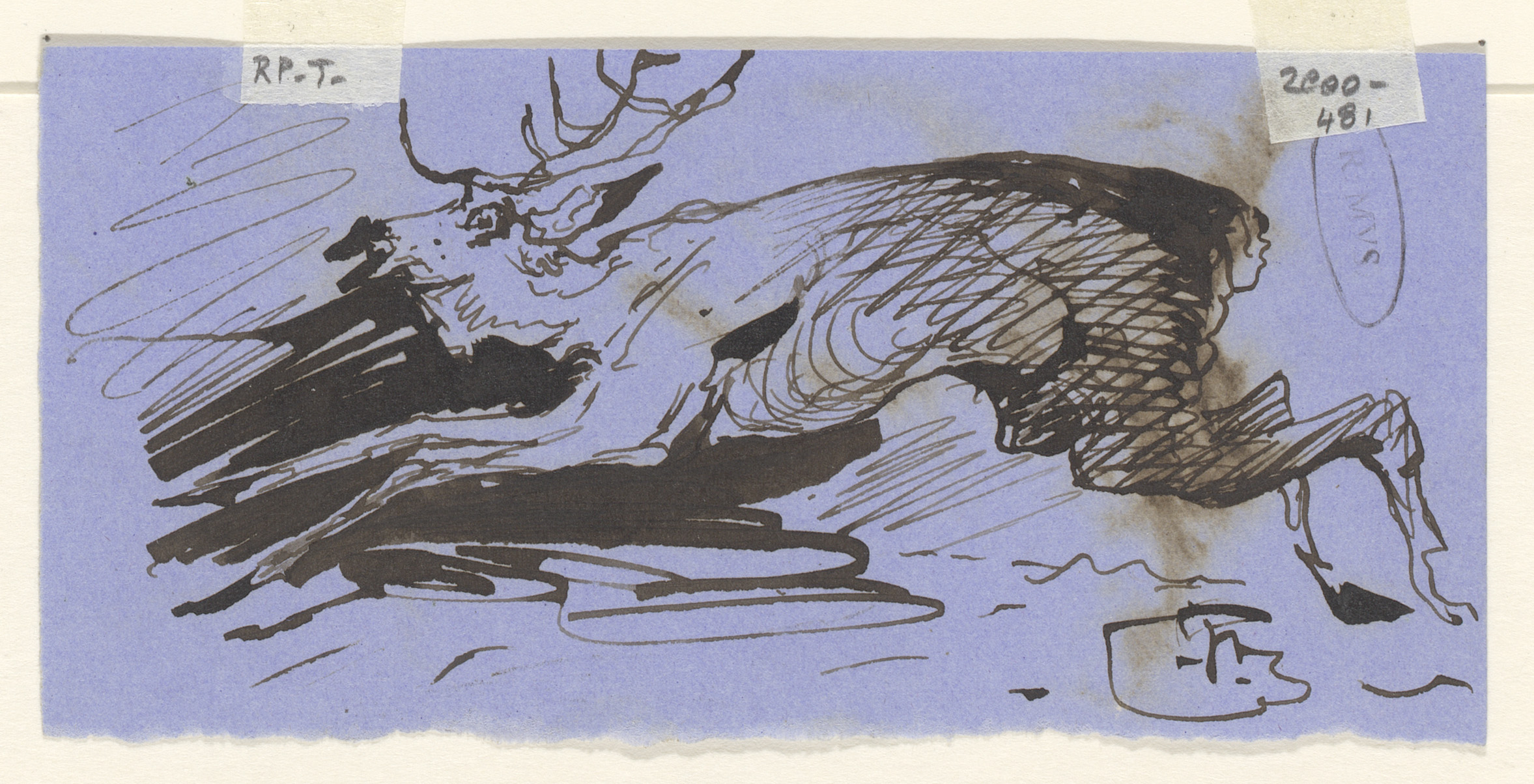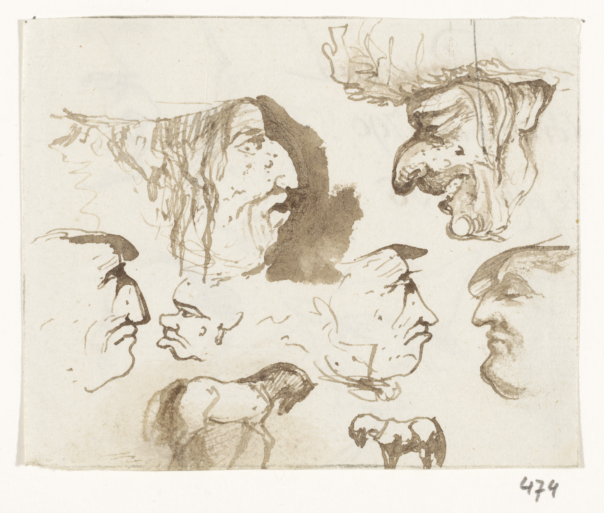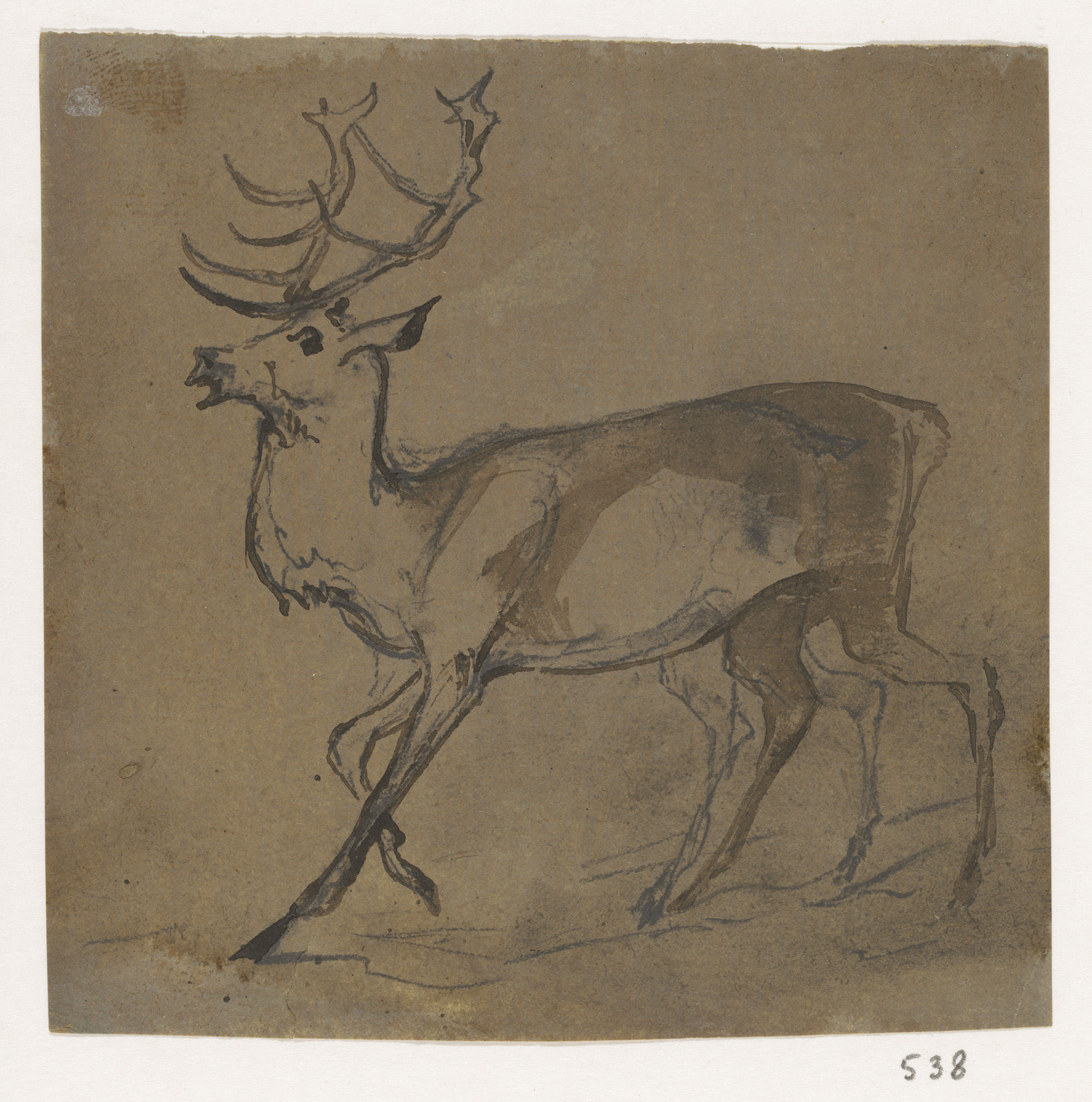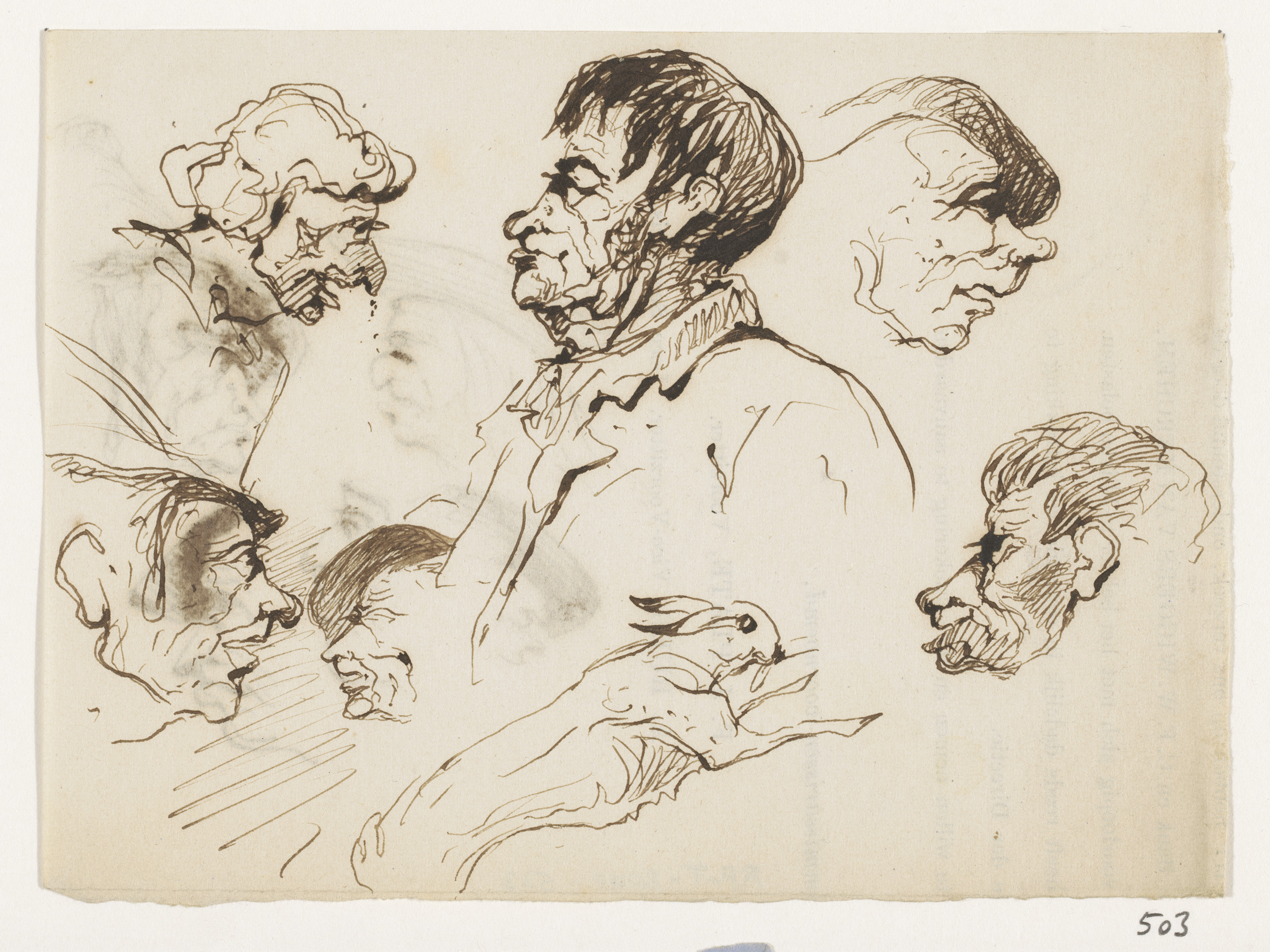 Schetsblad met koppen en herten