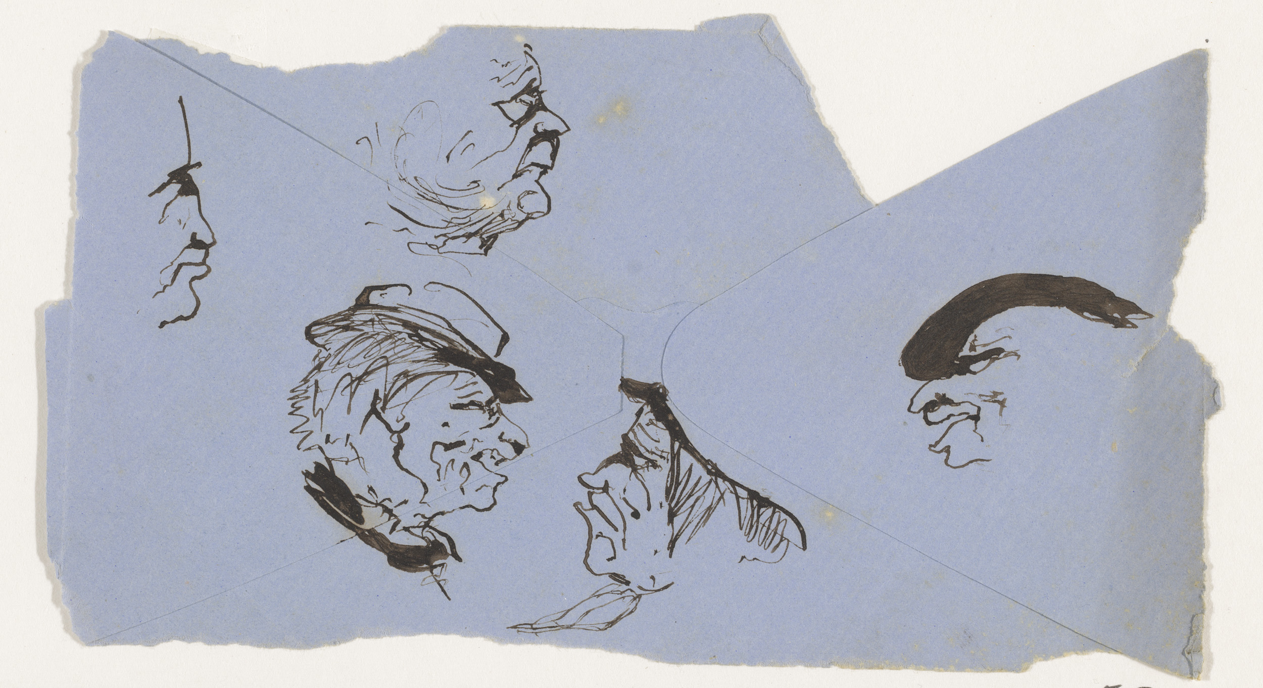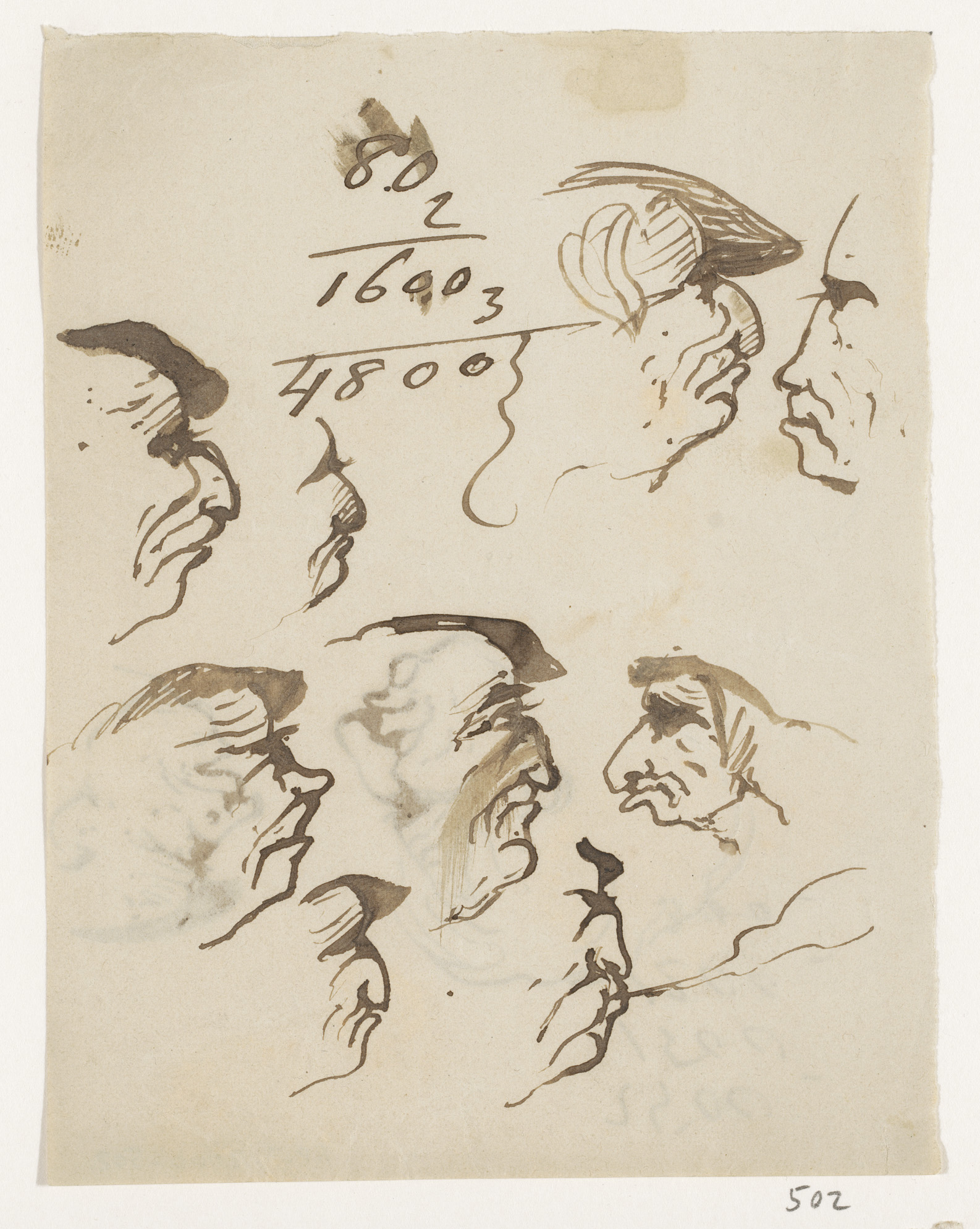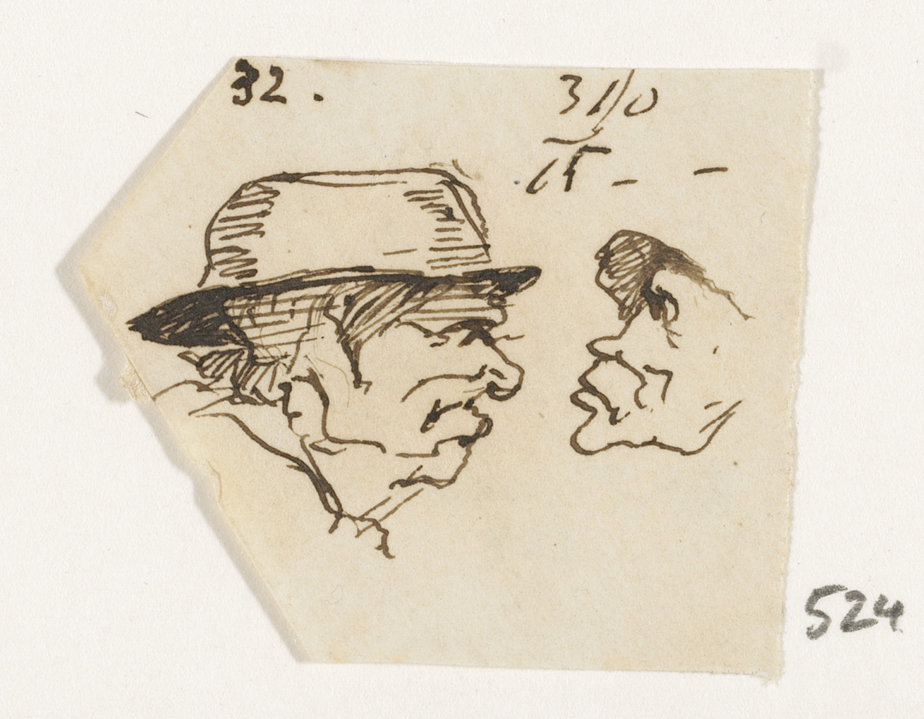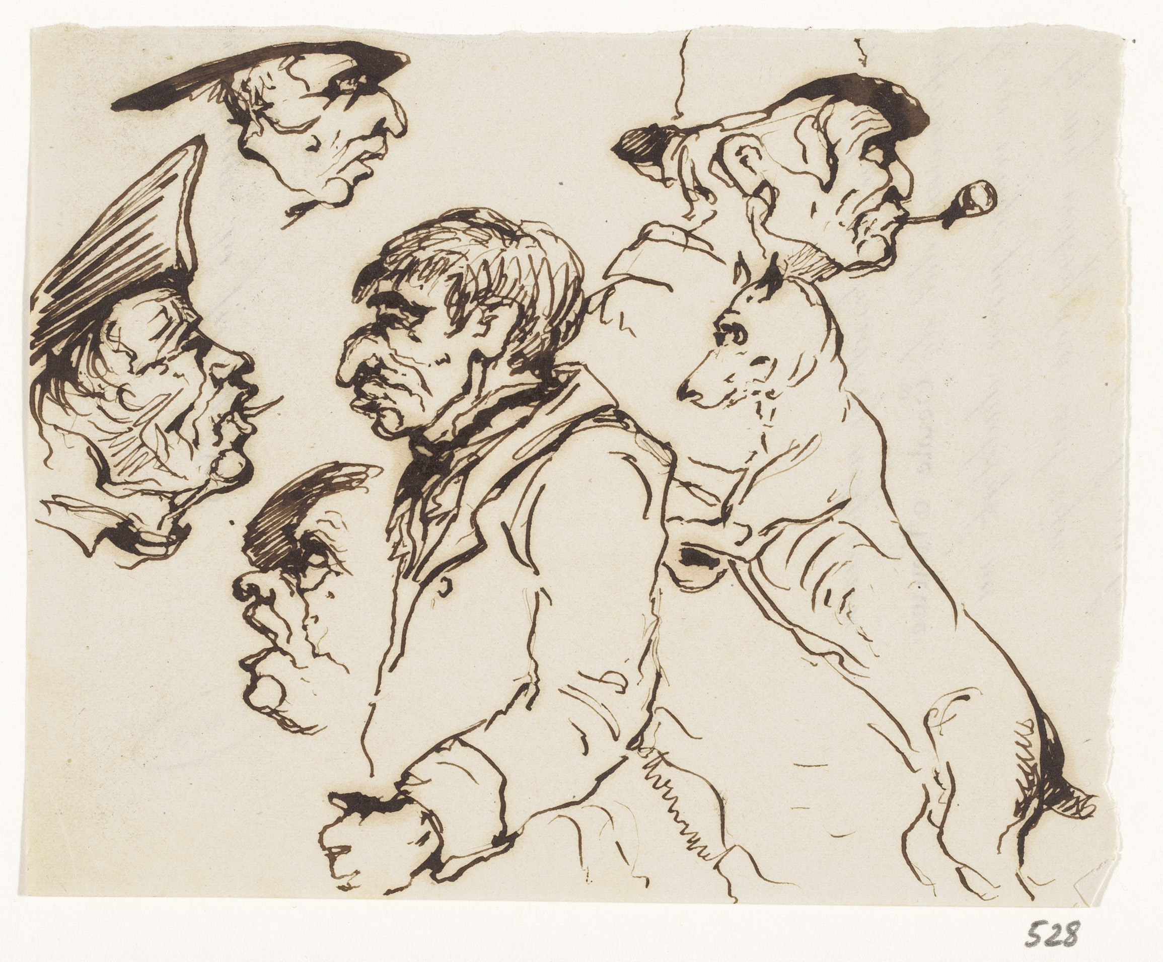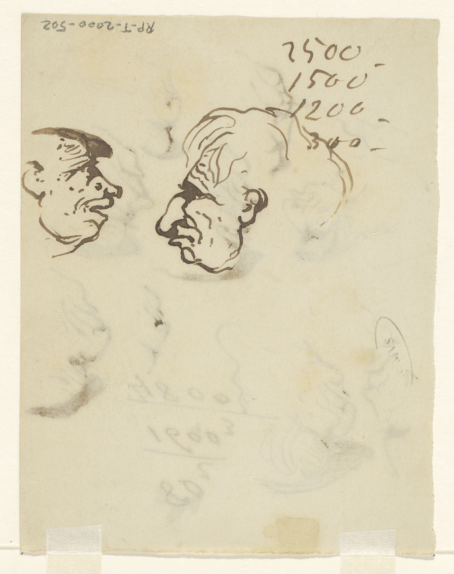 Schetsblad met koppen en herten