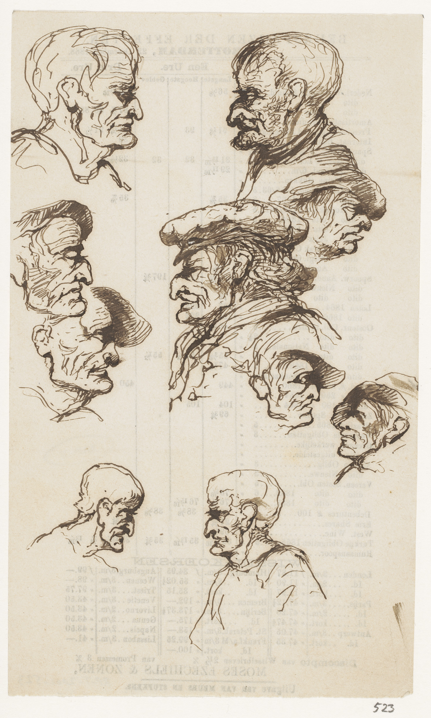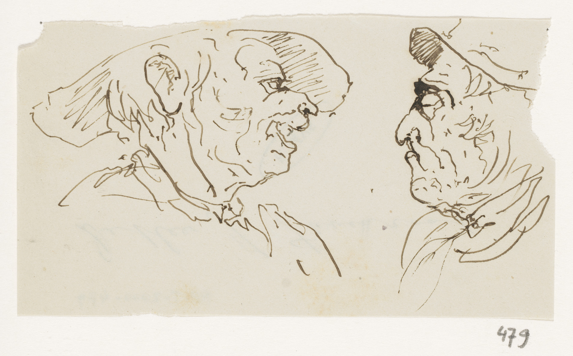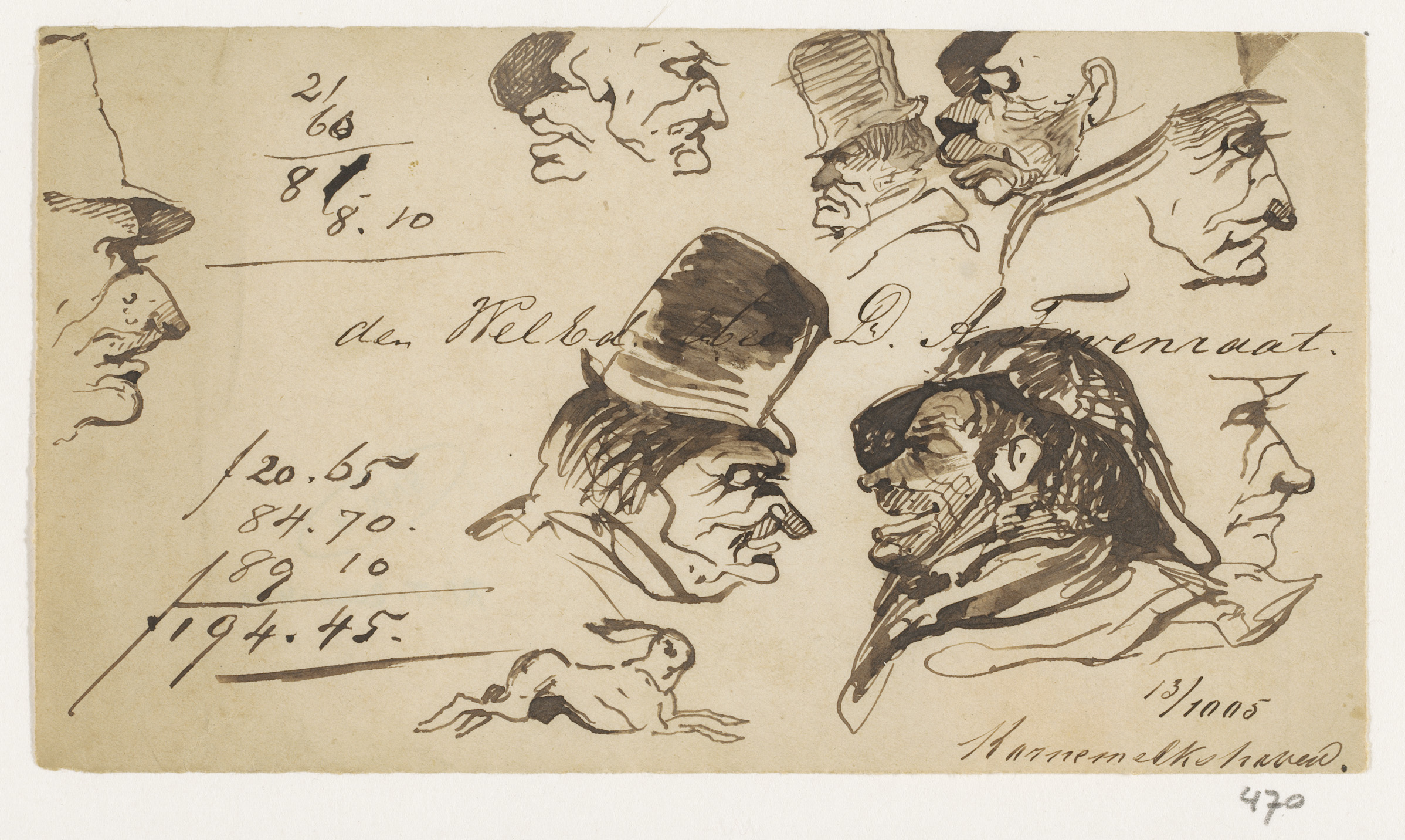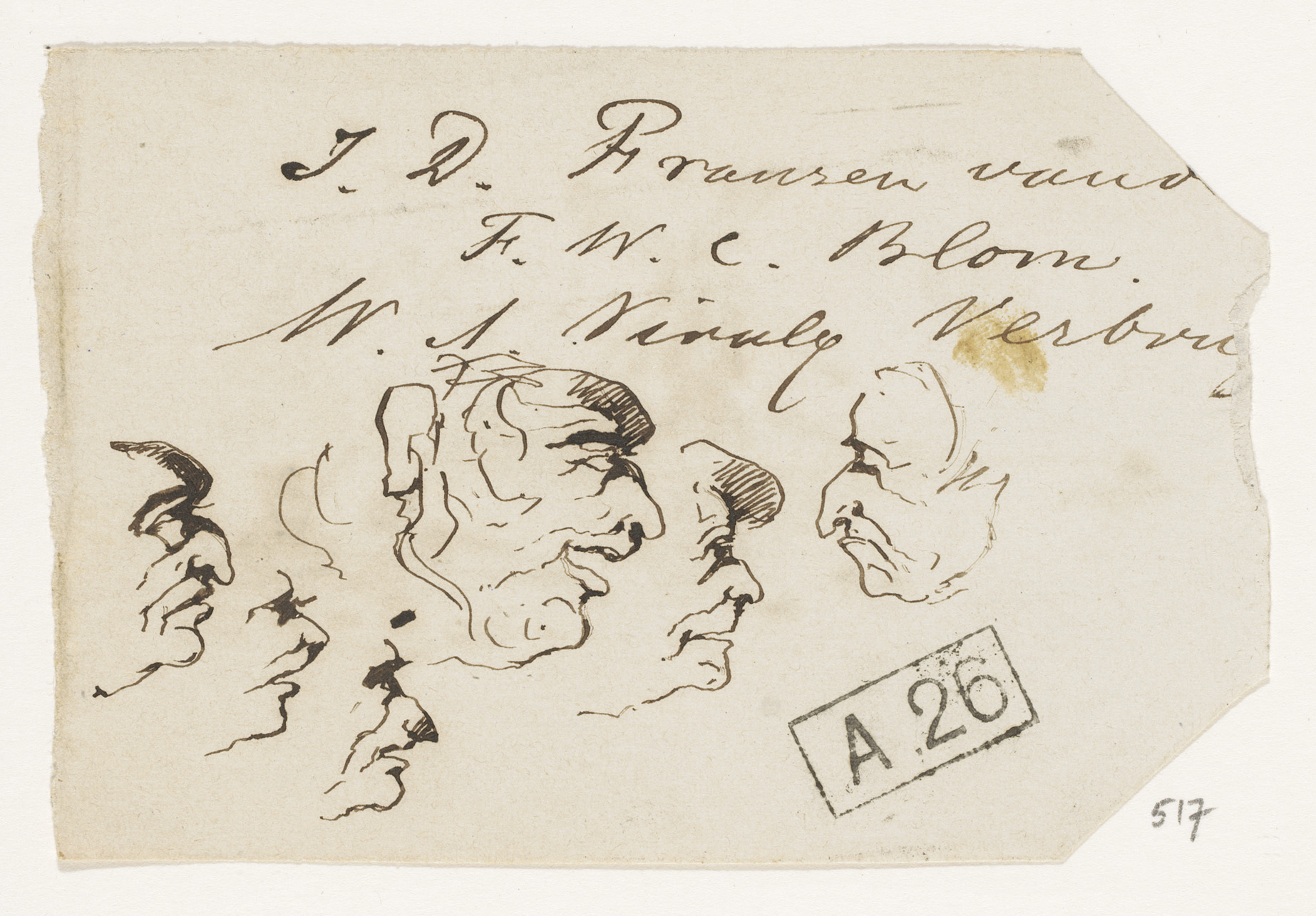 Schetsblad met koppen en herten
