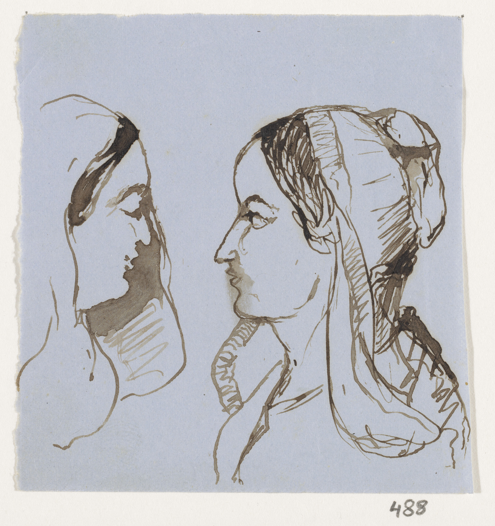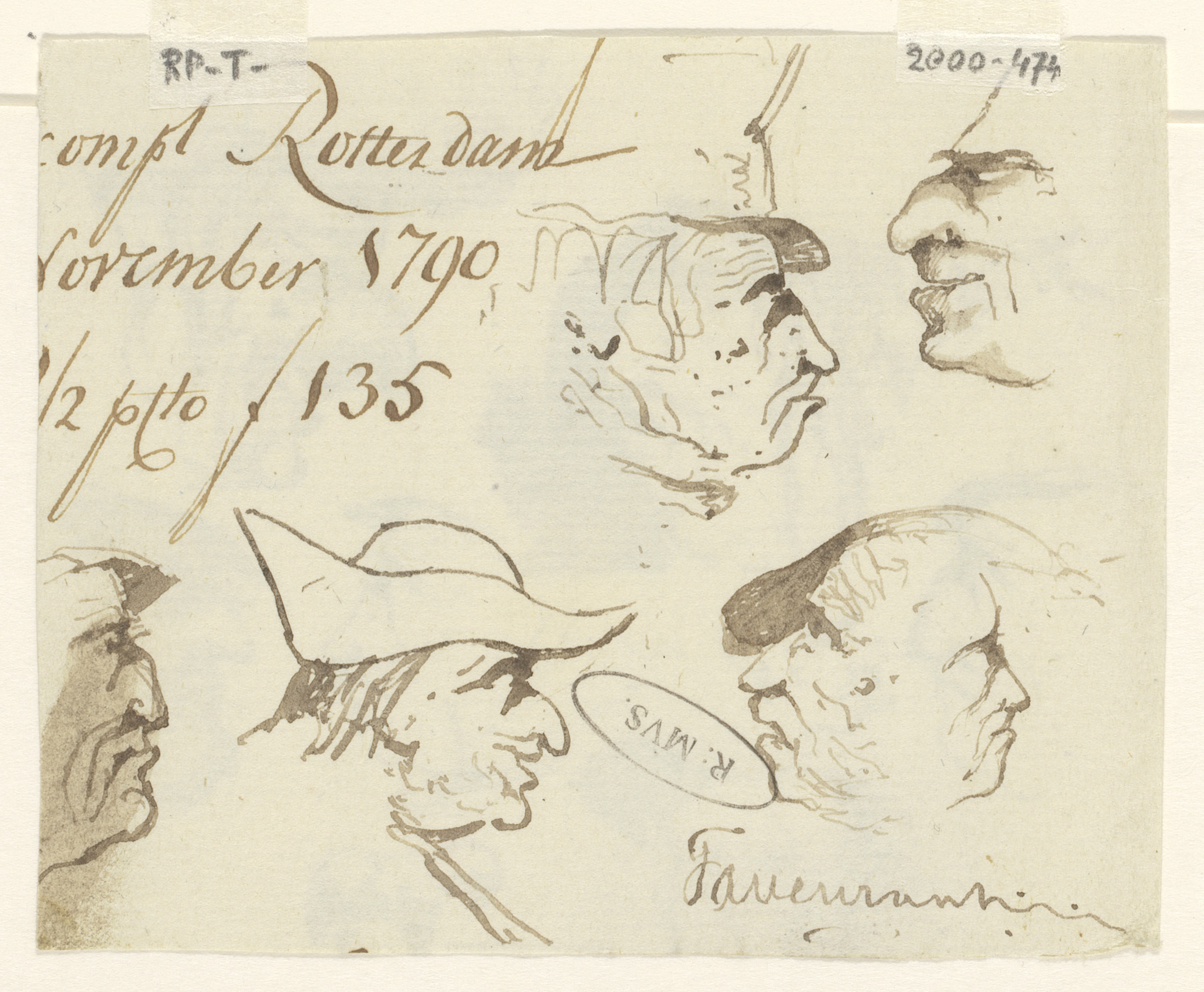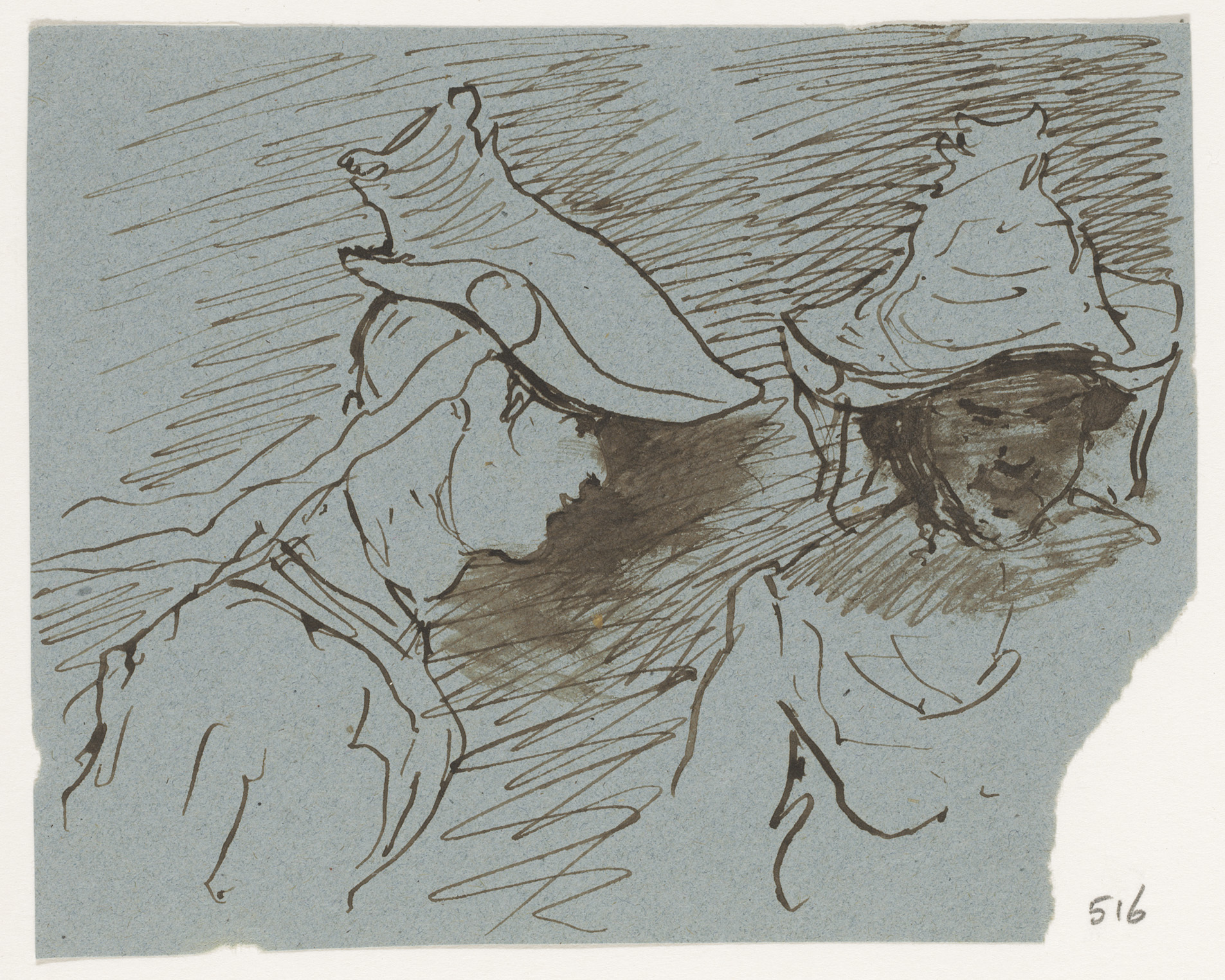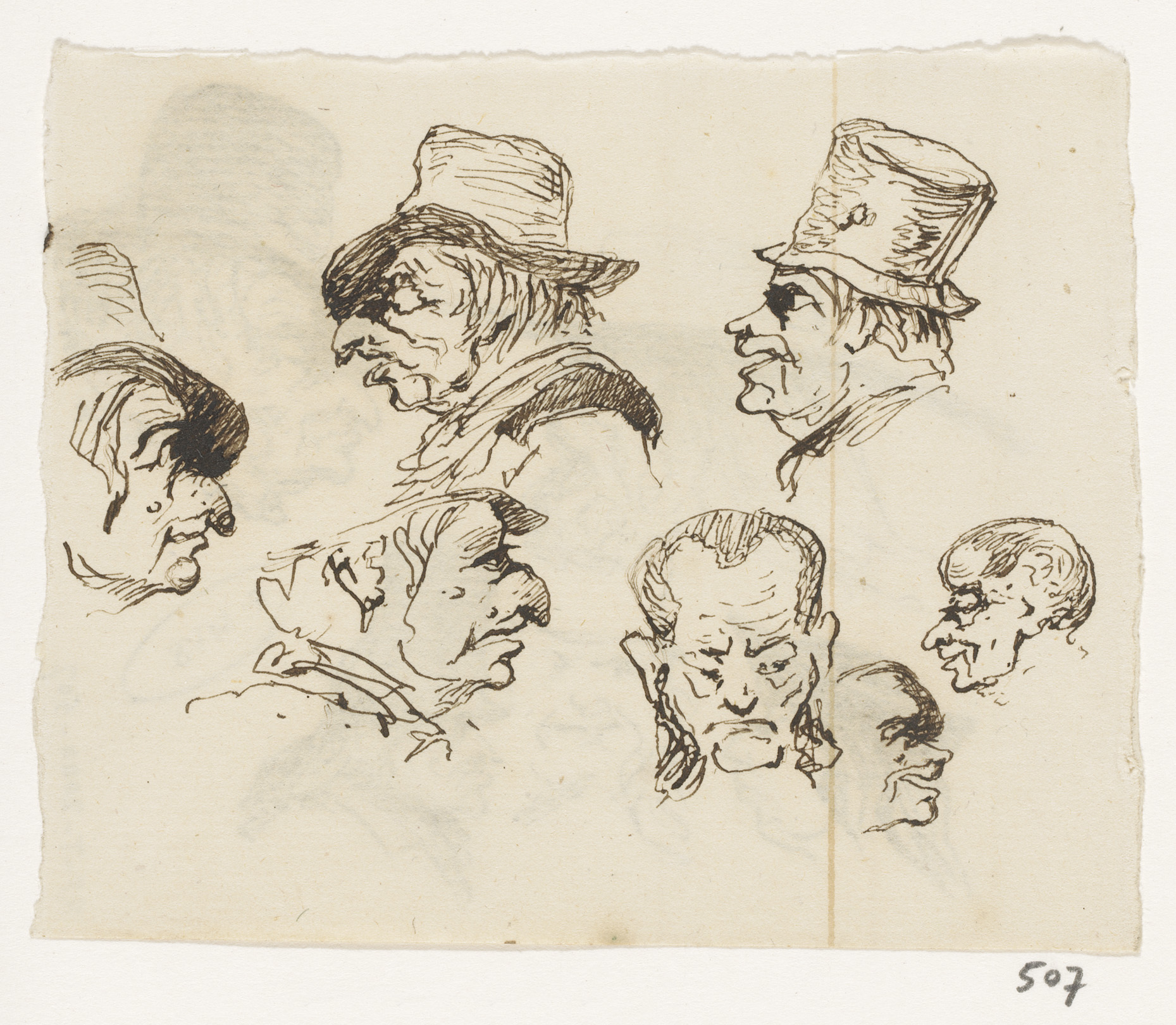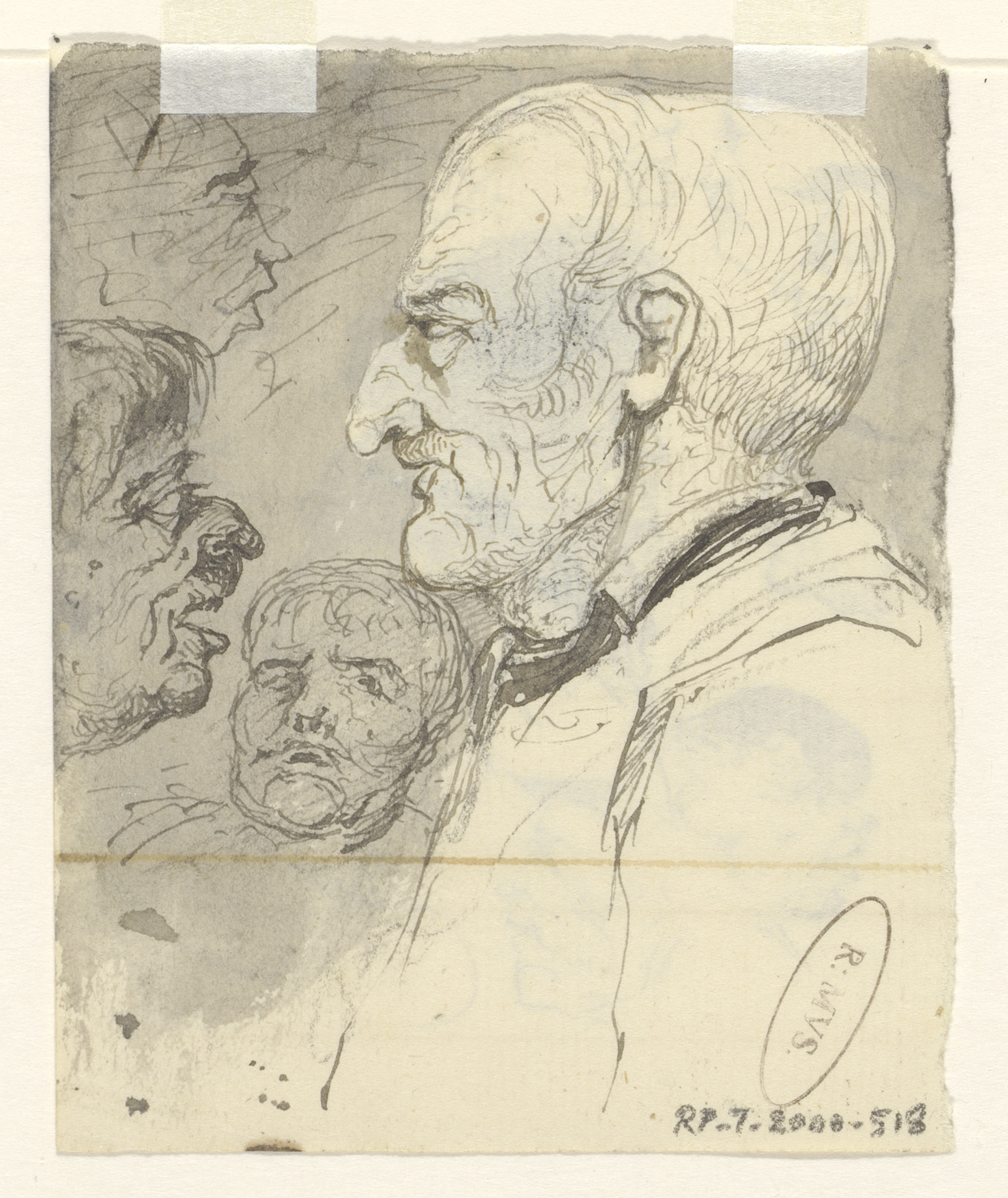 Schetsblad met koppen en herten