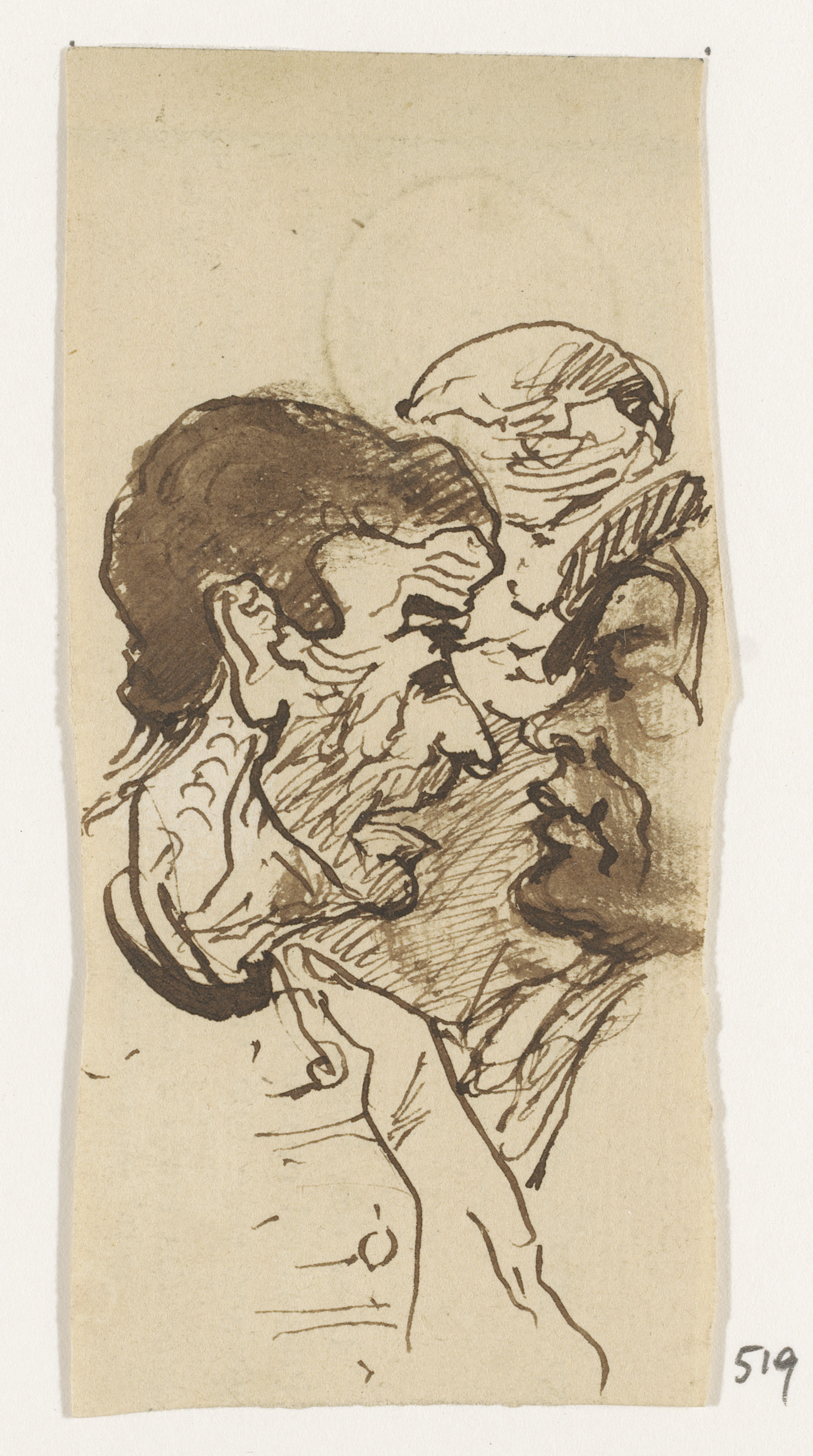 Strook met koppen en staande man