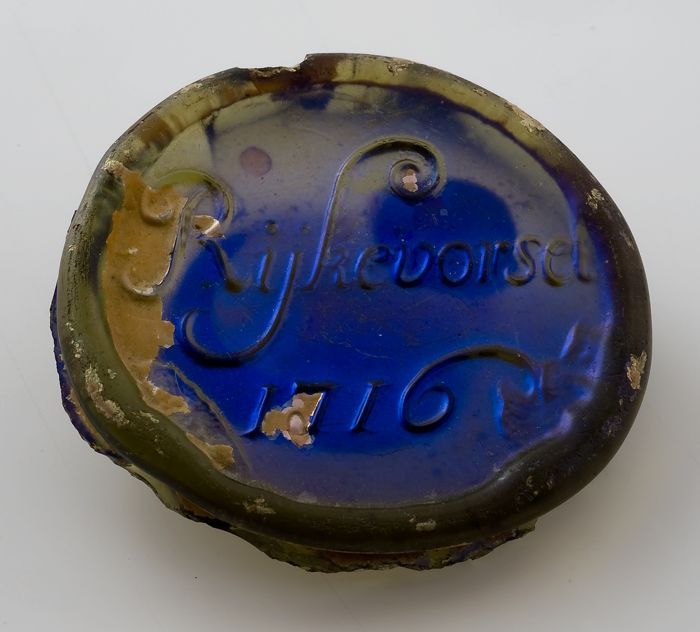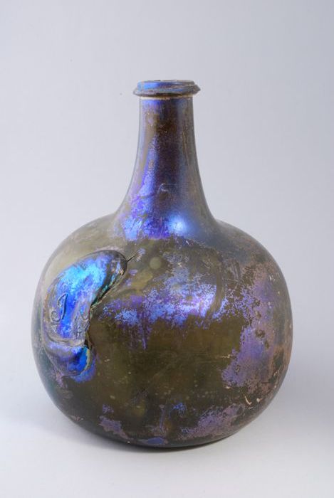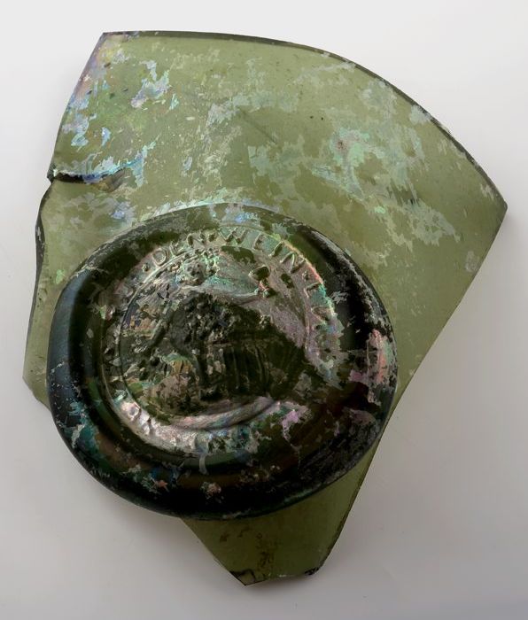 Fragment buikfles waarop zegel met Bacchus op het va...