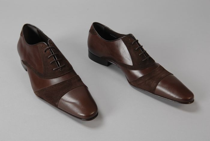 Paar herenschoenen van bruin leer en suède, kleine h...