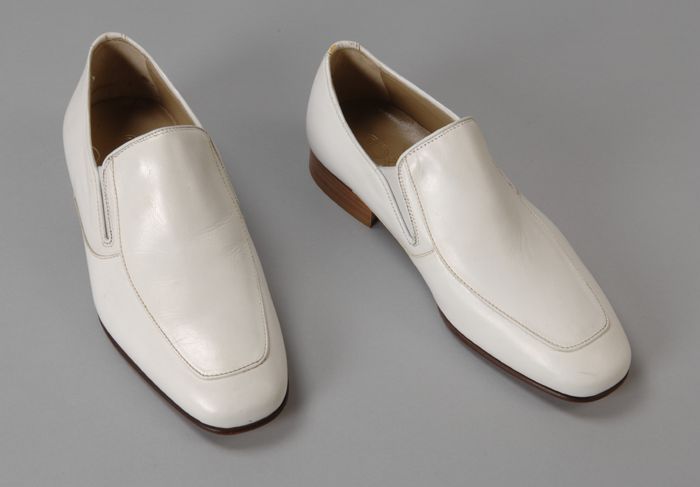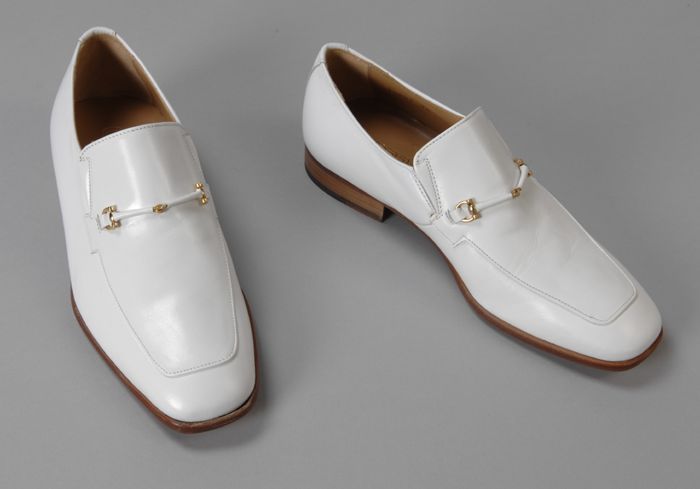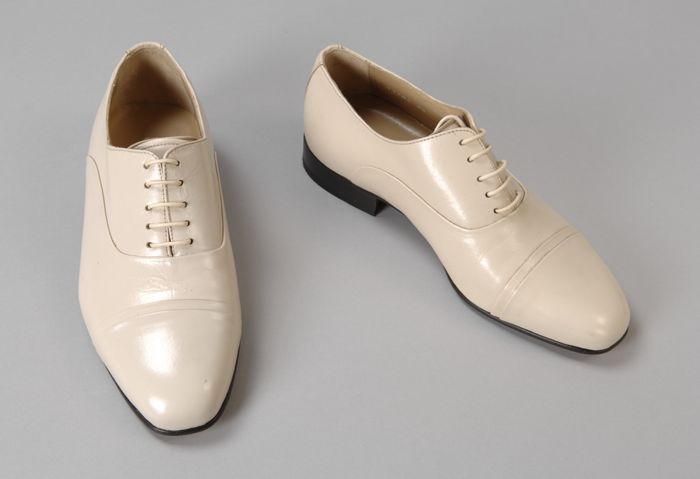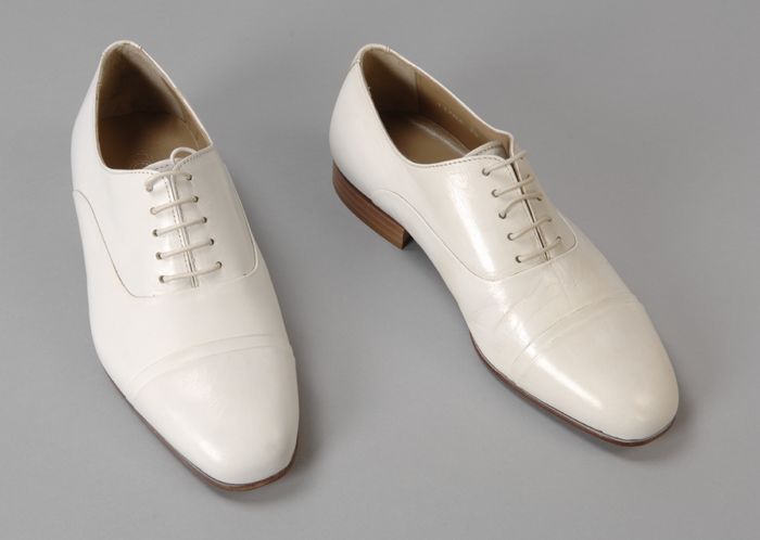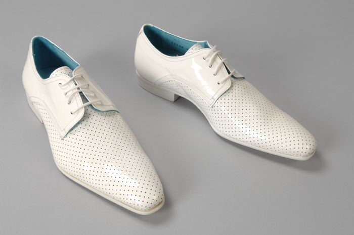 Paar herenschoenen van wit leer met witte lakneus, k...