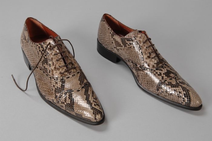 Paar herenschoenen van grijs leer met grijze lakneus...