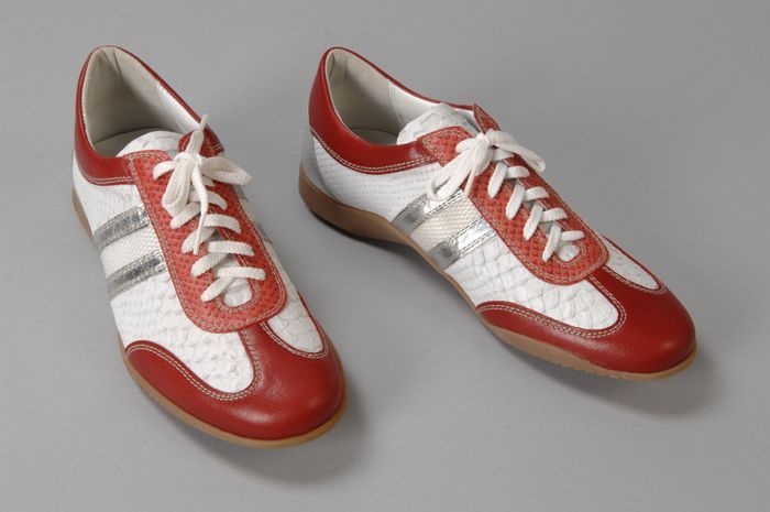 Paar herenschoenen, gympen, rood en wit, "Corbeau"