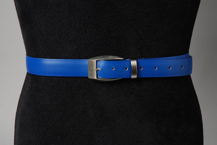 Paar herenschoenen van blauw leer met blauwe lakneus...
