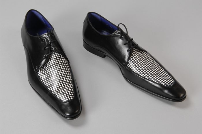 Paar zwarte heren veterschoenen, met zwart-wit patro...