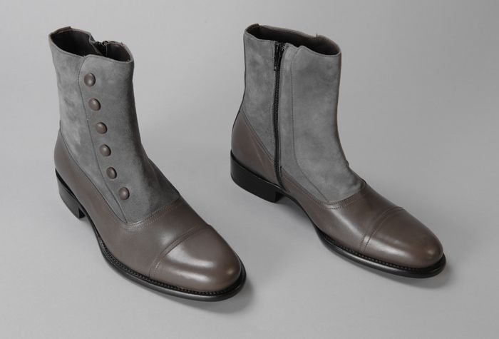 Grijze halfhoge herenlaars met knopen, "Corbeau"