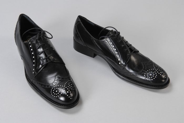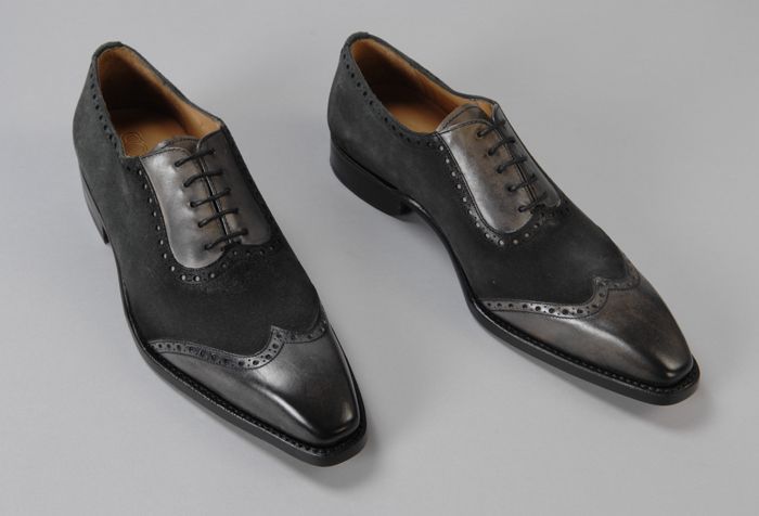 Paar grijze brogue herenschoenen met veters, "Corbeau"