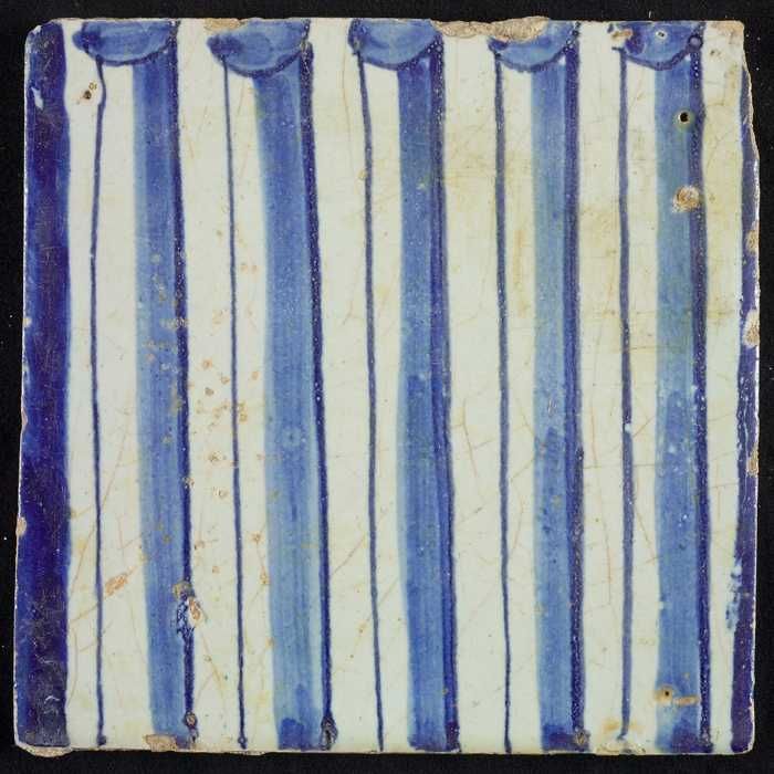 Tegel van schoorsteenpilaster, blauw op wit, deel va...