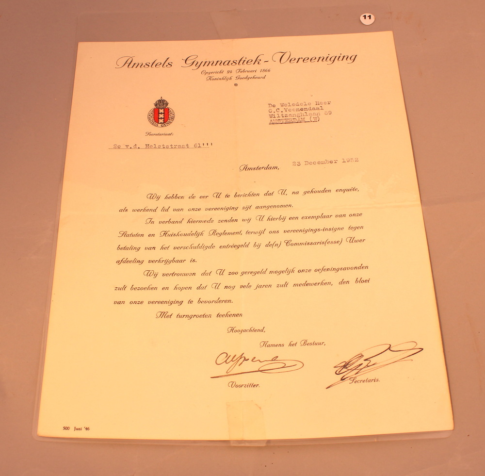 Aanstelling werkend lid C.C.Veenendaal Amstels Gymna...
