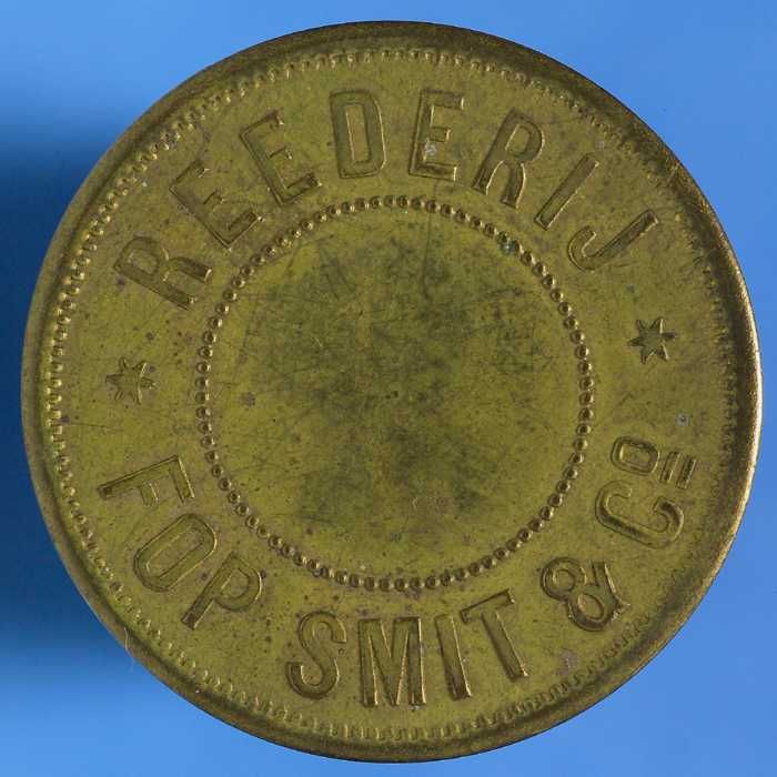 Geelkoperen huismunt van de Reederij Fop Smit & Co