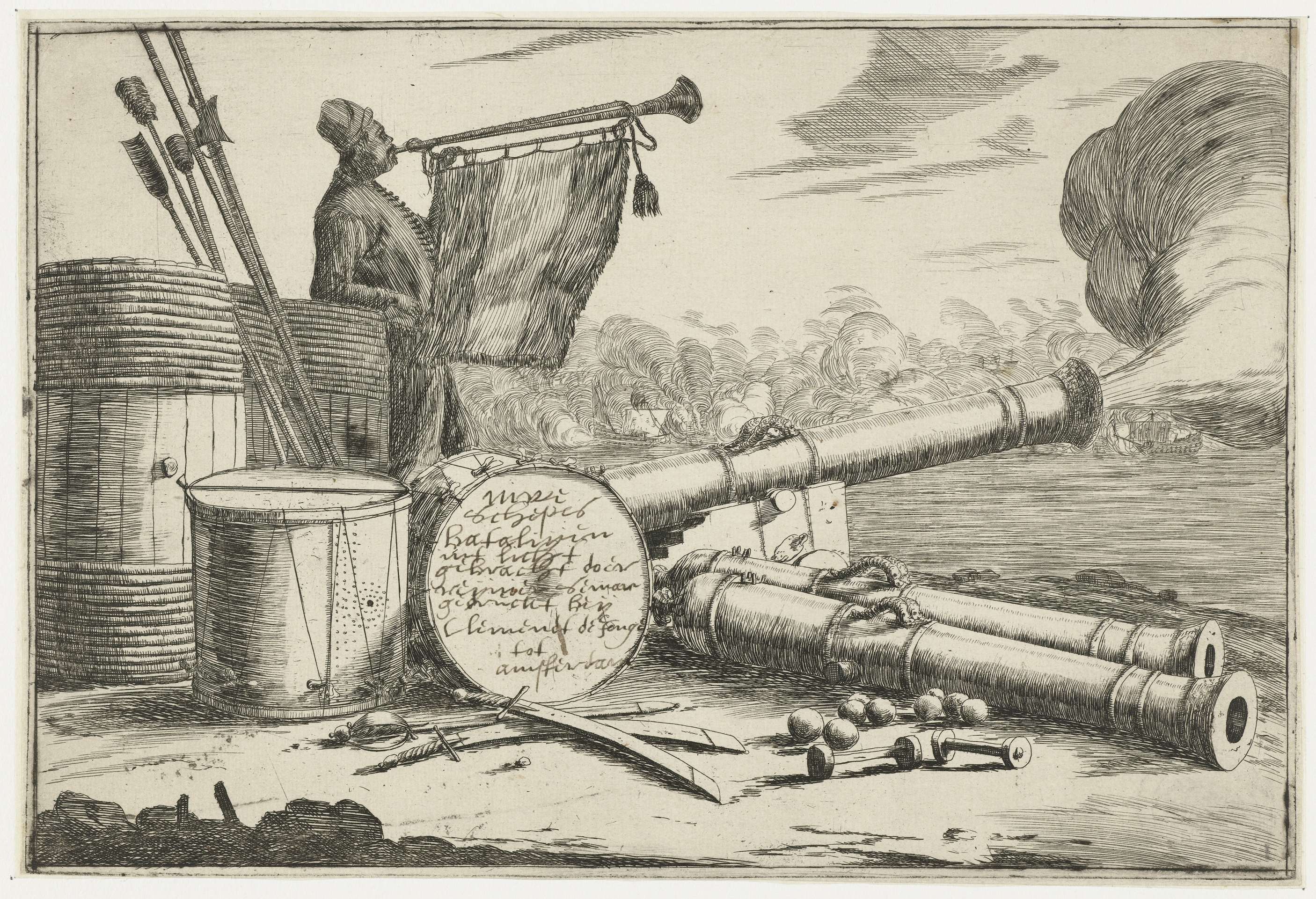 Titelblad met de uitrusting van een oorlogsschip en ...