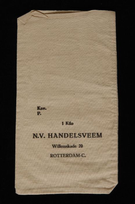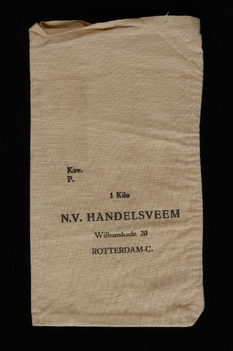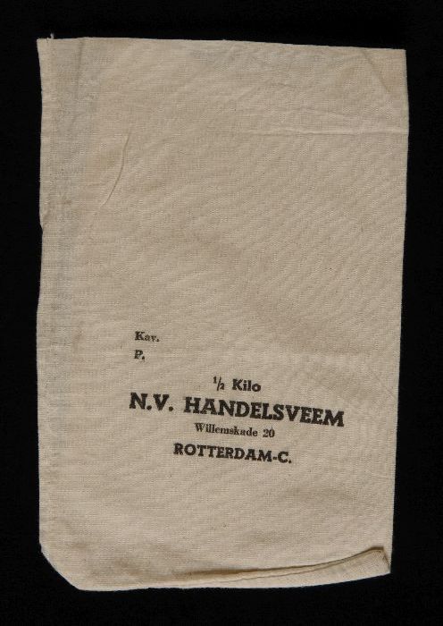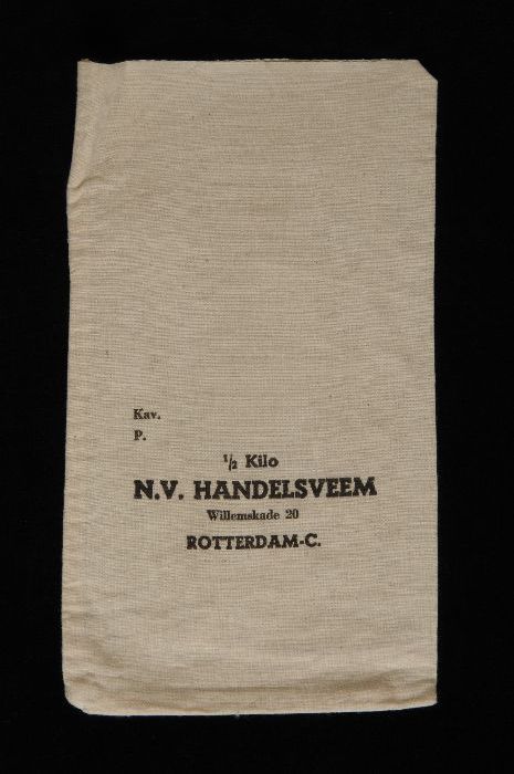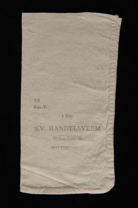 Monsterzak van wit katoen met opdruk "N.V. Handelsve...