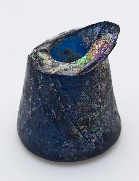 Fragment van glazen oor met omgekruld uiteinde, held...