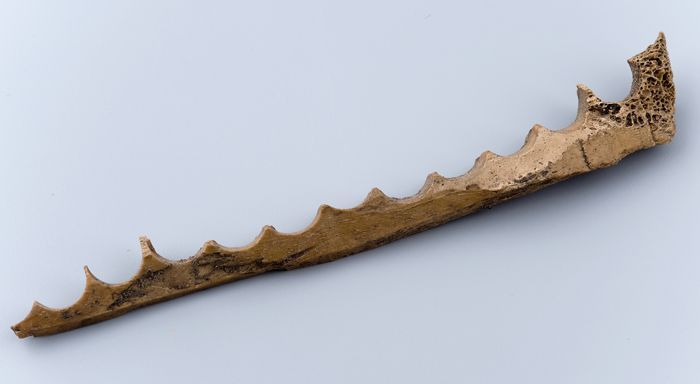 Strook been, waarin halfronde geboorde gaten, restvo...