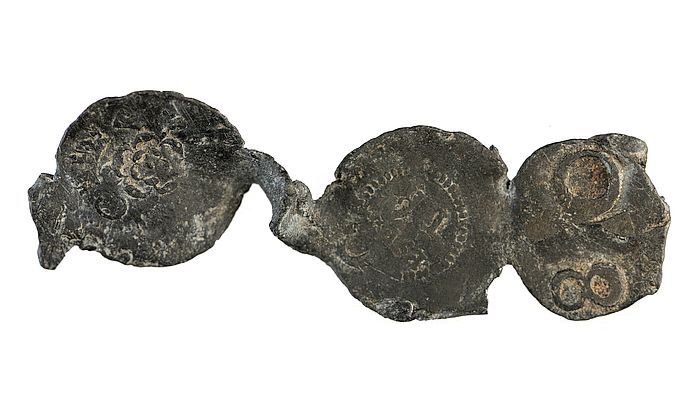 Lakenlood met roos, tekst en "O"