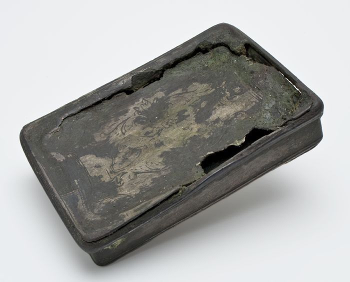 Vertind of verzilverd koperen snuifdoos met gegravee...